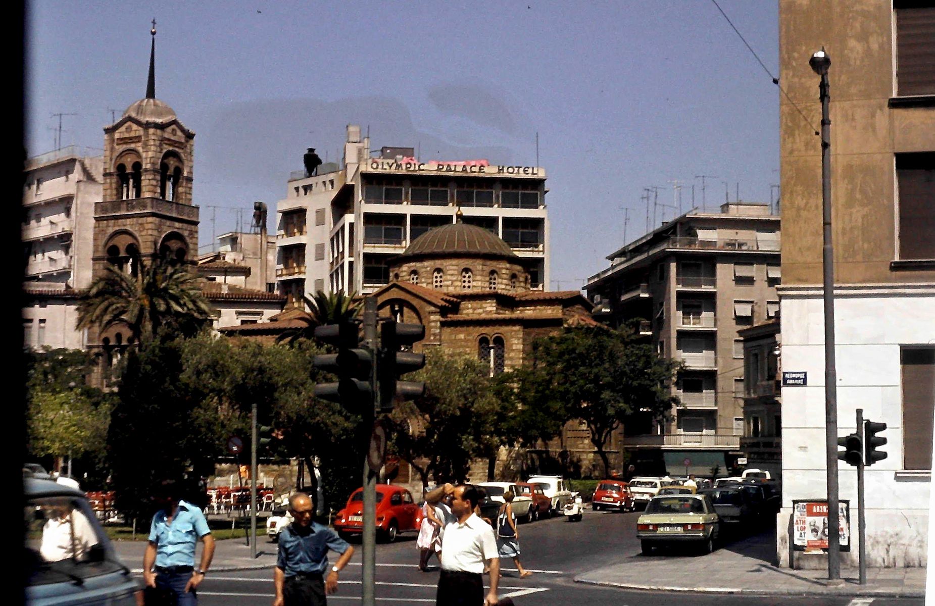 Auf den Außendecks war das Gedränge groß. Alle waren neugierig, was sie beim ersten Landgang erwartete. Ich auch und bestieg mit vielen Mitreisenden einen Bus, der uns zum Kap Sounion bringen sollte. Diese Fahrt war herrlich in jeder Hinsicht. Wir hatten Juni. Und das in Griechenland. Es war brüllend heiß. Klimaanlage im Bus? Sollte damals so etwas für Busse gegeben haben, nicht für unseren. Okeh, man konnte ja die Fenster für Durchzug öffnen. Das versuchten wir auch – aber es brachte nichts … Die, die bereits von Piräus über Athen zum Kap Sounion gefahren waren, wissen Bescheid: In Athen gab es ein Hobby für KFZ-Fahrer: das Stauerlebnis. Wir hatten es zur Genüge und so war nichts mit Durchzug. Heiße Luft und Abgase strömten in den Bus. Herrlich – also Fenster schließen und schwitzen. Und an den Plastiksitzen festkleben … Aber es gab Muße. Man konnte in Ruhe Athen erleben. So richtig toll waren auch damals die Innenstadtviertel nicht. Lichtblicke gaben vor allen Dingen die an uns im Schritttempo vorbeiziehenden Kirchen wie die Kirche der Heiligen Dreieinigkeit.