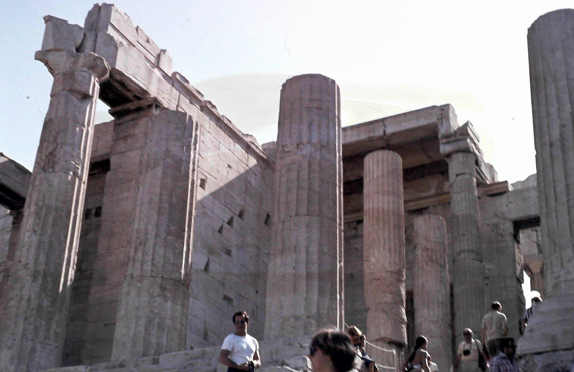 Irgendwann hatten wir es geschafft. Durchgeschwitzt. Der leichte Wind und die Sonne sorgten dafür, dass alles schnell trocknete. Unsere Busgruppe stand vor der Vorhalle, auf gut deutsch Propyläen.