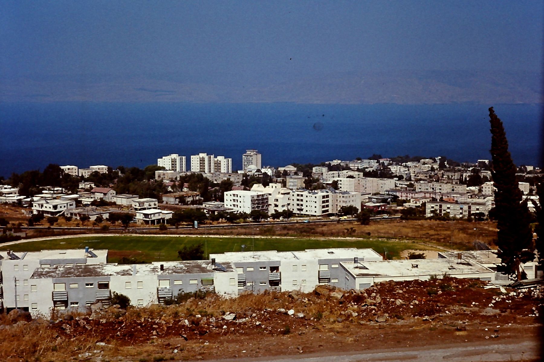 eine Stadt römischen Ursprungs, die nach der Zerstörung Jerusalems im Jahre 70 n.Chr. das geistige und religiöse Zentrum des Judentums wurde. Für eine Besichtigung war keine Zeit vorhanden; aber der hinter den wieder schneeweißen Bauten schimmernde tiefblaue See Genezareth war ein regelrechter Hingucker. Auf der anderen Seite des Sees waren die Golan-Höhen zu erkennen.