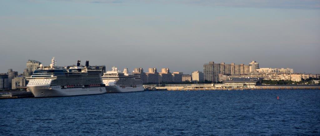 Wir durften ein bisschen länger schlafen – unser Treffpunkt zur dritten Stadtbesichtigung war erst für 10 Uhr terminiert. Was machte wir bis zur Abfahrt außer ausgiebig zu frühstücken? Logisch – Schiffe gucken … mit dem unvermeidlichen Kaffeepott in der Hand. Die Celebrity Eclipse hatte ohne uns zu fragen die AIDAdiva ersetzt. Ein echter Ersatz? Die Antwort überlasse ich Euch … Unterhaltung gab´s genug. Ein weiteres Schiff steuerte die Anlegestellen an – die Seven Seas Explorer. Sie schob sich zwischen die Celebrity Eclipse und uns – schwer was los im Hafen! Wie, der Kaffepott ist geleert? Dann aber los – los zu Frühstück, das wir wie immer in munterer Ruhe zu uns nahmen. Es war keine Müdigkeit nach dem langen Abend festzustellten. Das konnten wir uns auch nicht leisten, denn ein langer Tag lag vor uns. Pünktlich um 10 Uhr erwartete uns Olga vor dem Bus und los ging´s. Wie am Vortag sollte die Fahrt zu unserem ersten Ziel – dem Alexander Newskij-Kloster ein wenig länger dauern. Nicht, dass es am Ende des Newskij-Prospekts sehr weit entfernt war. Nein, der von einem der größten deutschen Versicherungsgesellschaften gesponsorte St. Petersburg – Marathon legte uns Sperren in den Weg. Aber kein Problem – so fuhren wir auf Nebenstrecken und sahen mehr als bei der direkten Anfahrt. Wie ein Mietshaus, das bestimmt bessere Tage und Mieter gesehen hatte. Auf dem Dach fingen keine Solar-Paneele die Energie ein – es waren ganz einfach Blechplatten, um die Löcher im Dach zu reparieren … Einige Meter weiter sahen die Wohnblöcke gepflegter aus.