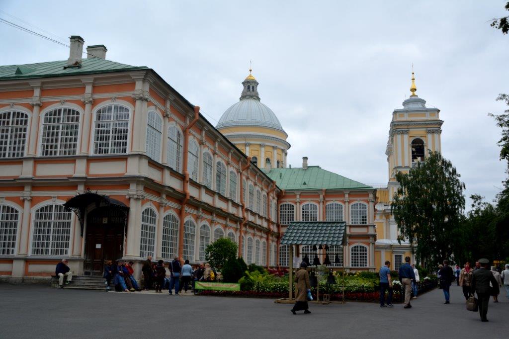 Auf dem Rückweg zum Klosteranlageneingang passierten wir den Tichwiner Friedhof, auch Künstlerfriedhof genannt. Wir besuchten aus Zeitgründen allerdings nicht die Gräber von Fjodor Dostojewskij, Modest Mussorgskij und Pjotr Tschajkowskij, um nur einige der hier beerdigten Berühmtheiten zu nennen. Direkt gegenüber befand sich der Lazarus-Friedhof, auf dem Architekten, Wissenschaftler (u.a. der in Basel geborene Mathematiker Leonhard Euler) sowie Adlige ihre letzten Ruhestätten fanden.