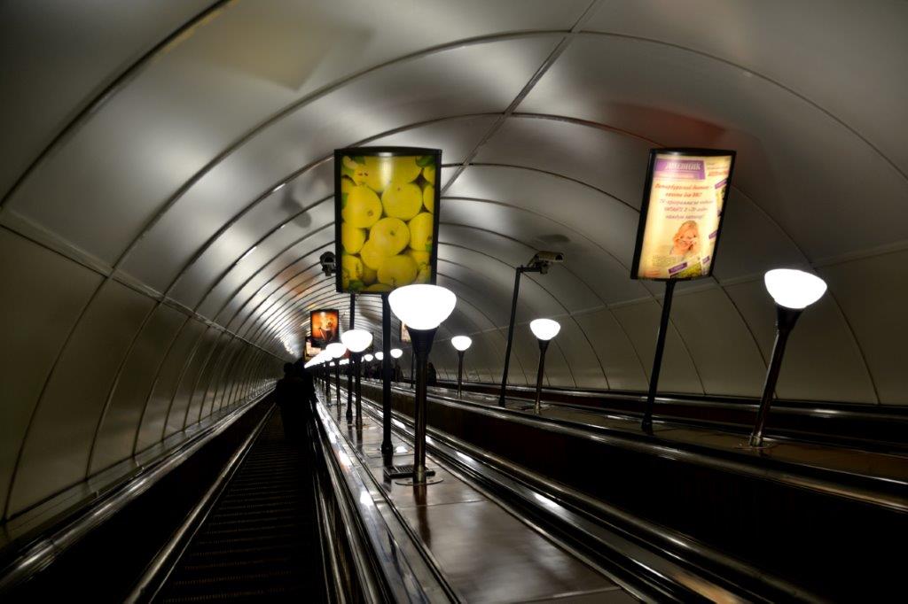 Der Bahnsteig lag 54 m unter der Erdoberfläche; die Metro verläuft im Schnitt 50 – 75 m unter der Erde; den tiefsten Punkt weist mit 102 m die Station nahe der Admiralität auf. Warum so tief? Petersburg wurde auf sumpfigen Gelände gebaut, das immer noch sehr tiefe Moore aufweist. Darunter befinden sich schwer zu durchbohrende Tonlagen. Aus diesem Grunde liegen die U-Bahnrühren verhältnismäßig tief unter der Erdoberfläche.