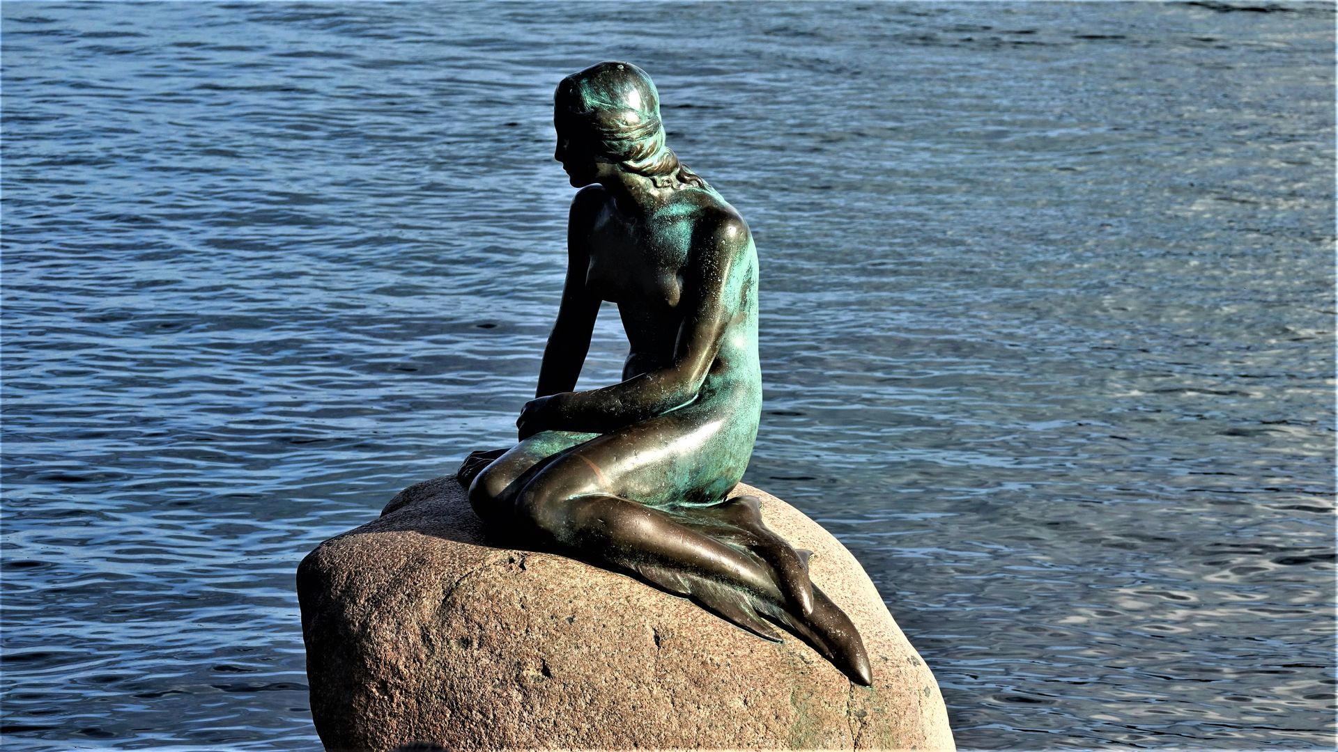Als erstes begegnen wir dem bekanntesten Wahrzeichen Kopenhagens, der nur 1,25 m großen „Kleinen Meerjungfrau“, die hier seit mehr als 100 Jahren allen Wetterunbilden trotzt. Leider ist sie im Laufe der Jahrzehnte bis hin zur Enthauptung Opfer vieler Anschläge diverser „Aktivisten“ geworden. Sie konnte aber immer wieder original getreu restauriert werden, da die Erben des Bildhauers eine Originalform an einem geheimen Ort verwahren.