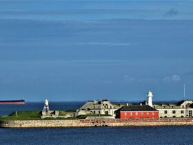 Nachdem die „Ocean Bar“ dann endlich geöffnet hat, mache ich die letzten Bilder dieser Reise von hier. Ein Wasserflugzeug kehrt von Jütland zurück. Und dann noch ein letzter Blick auf die Festung, die die Hafeneinfahrt bewacht.