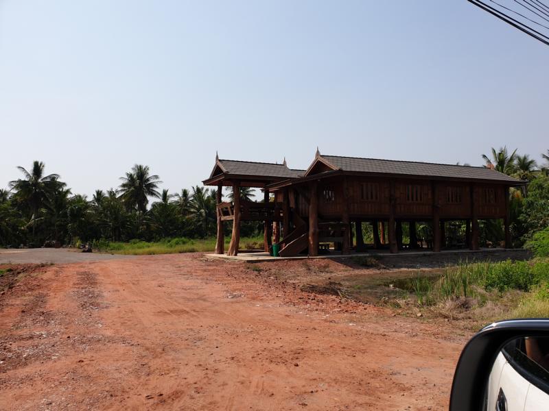 Es ist ein traditionelles Wohngebäude, das auf hohen Stelzen steht. So schützt man sich bei Überschwemmungen, oder, wenn unerwünschte Tiere zu Besuch kommen wollen. Gegen den Stau der Hitze, ist das Dach hoch und sorgt so für eine gut funktionierende Lüftung.