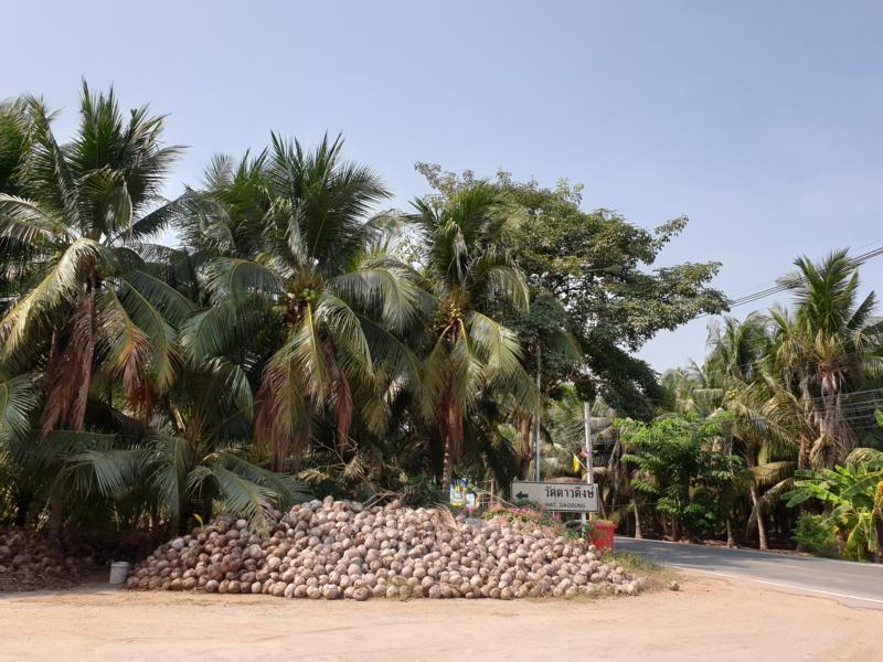 Kokosnüsse liegen bereit für den Verkauf, denn zur Zuckergewinnung