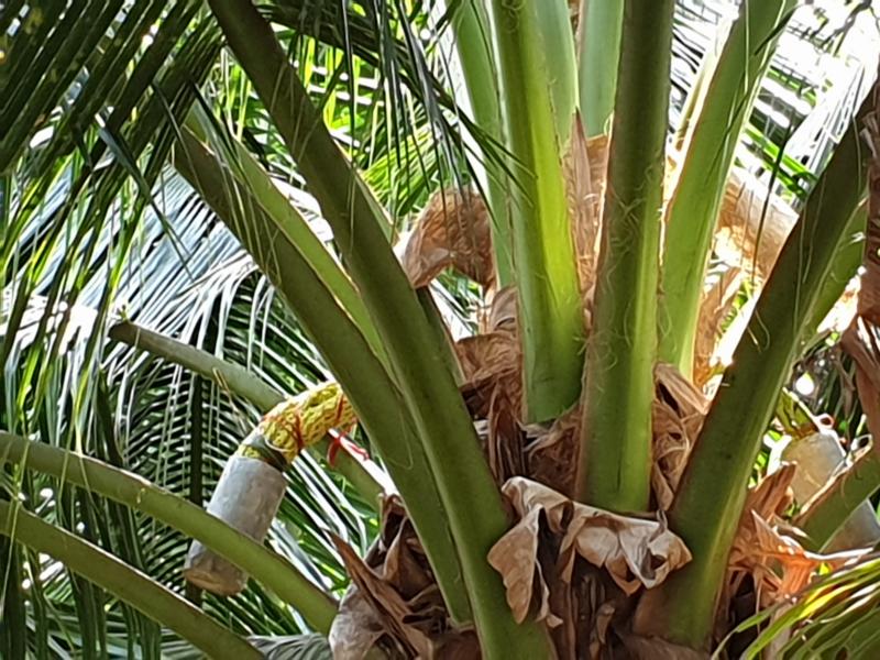 werden nur die Blüten verwendet. An einigen Palmen stehen Leitern