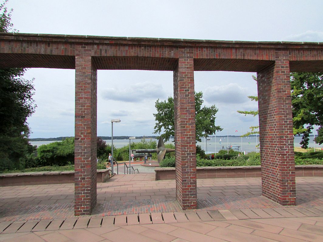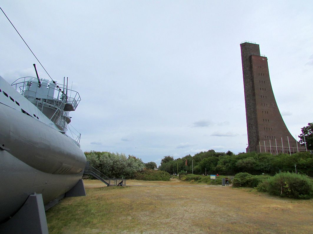Ich verlasse das Ehrenmal, um mich langsam meinem nächsten Programmpunkt – dem Besuch des am Strand liegenden U-Bootes zuzuwenden. Vorher suche ich mir jedoch noch eine schöne Perspektive, aus der ich den Turm gut aufs Bild bekomme.