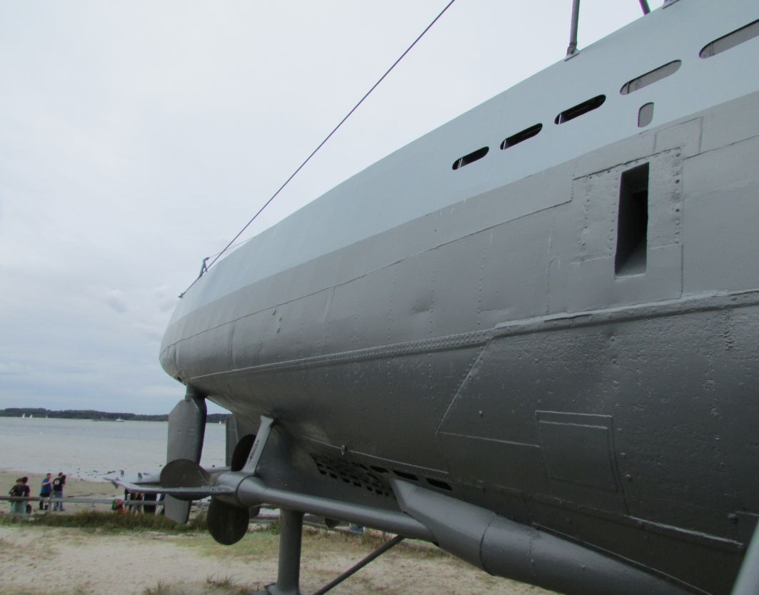 Gaben die sich immer mehr ballenden Wolken der Sonne gerade noch wenigstens eine geringe Chance, zwischen all dem Grau ein paar Strahlen zur Erde zu schicken, fallen auf meinem kurzen Weg vom Ehrenmal zum U-Boot sogar ein paar Regentropfen. Hoffentlich nimmt der „flüssige Sonnenschein“ nicht noch mehr zu.