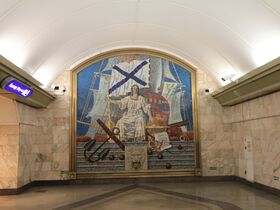 Wir beginnen in der 86 m tiefen Station, die dem Thema „Admiral und Werft“ gewidmet ist.