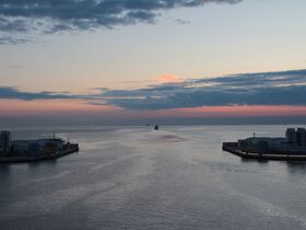 Es ist wirklich interessant und wir können die Durchfahrt im Sonnenuntergang vom Bug aus miterleben.