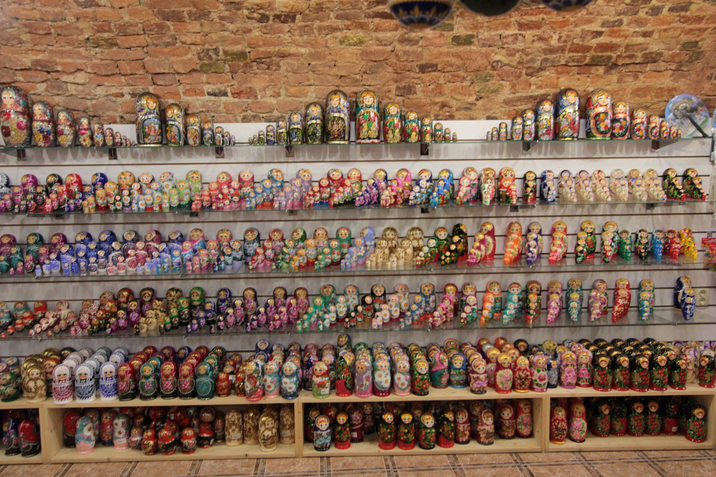 Überall Matruschkas, Karten, Magnete, Schmuck, Weihnachtskugeln und Vieles mehr, was man so braucht oder auch – in den meisten Fällen – nicht braucht.