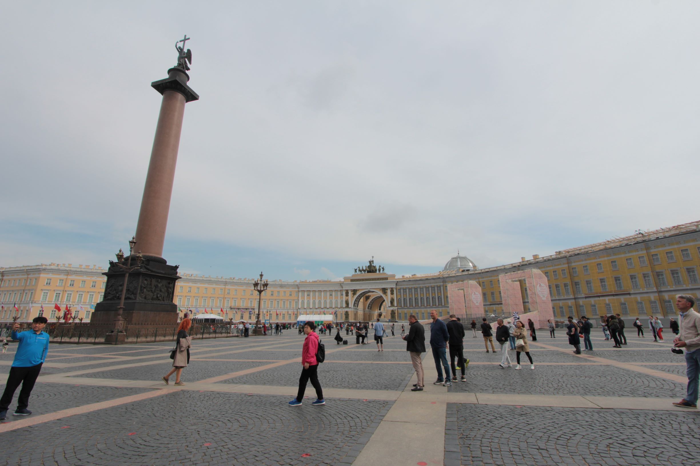 Wir schauen uns die (leider momentan aufgrund von Bauarbeiten ziemlich „eingepackte“) Blutskirche und die Isaak-Kathedrale an, fahren durch die Hauptstraße, den Newski-Prospekt und bekommen viele interessante Informationen von Anastasia.