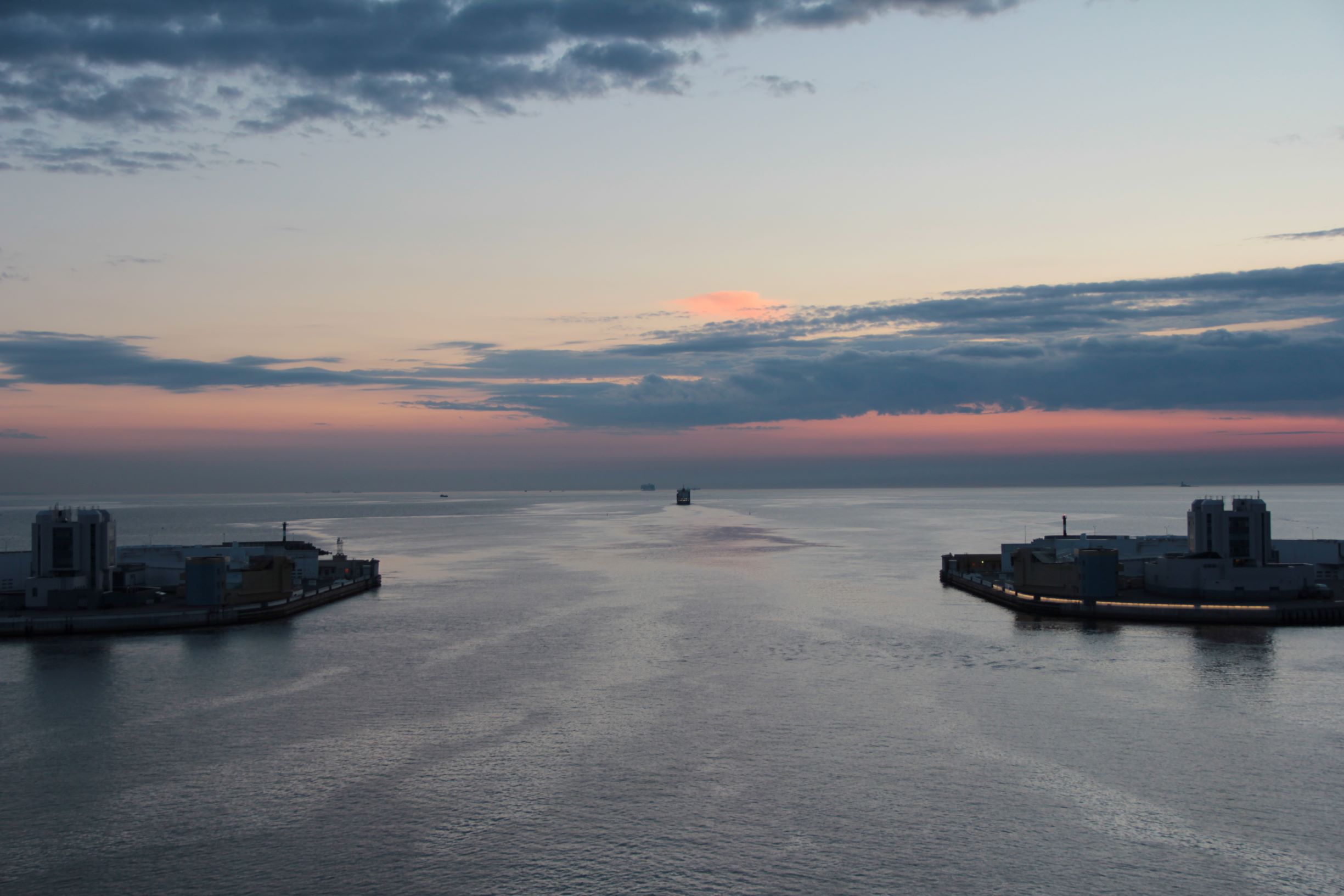 Es ist wirklich interessant und wir können die Durchfahrt im Sonnenuntergang vom Bug aus miterleben.