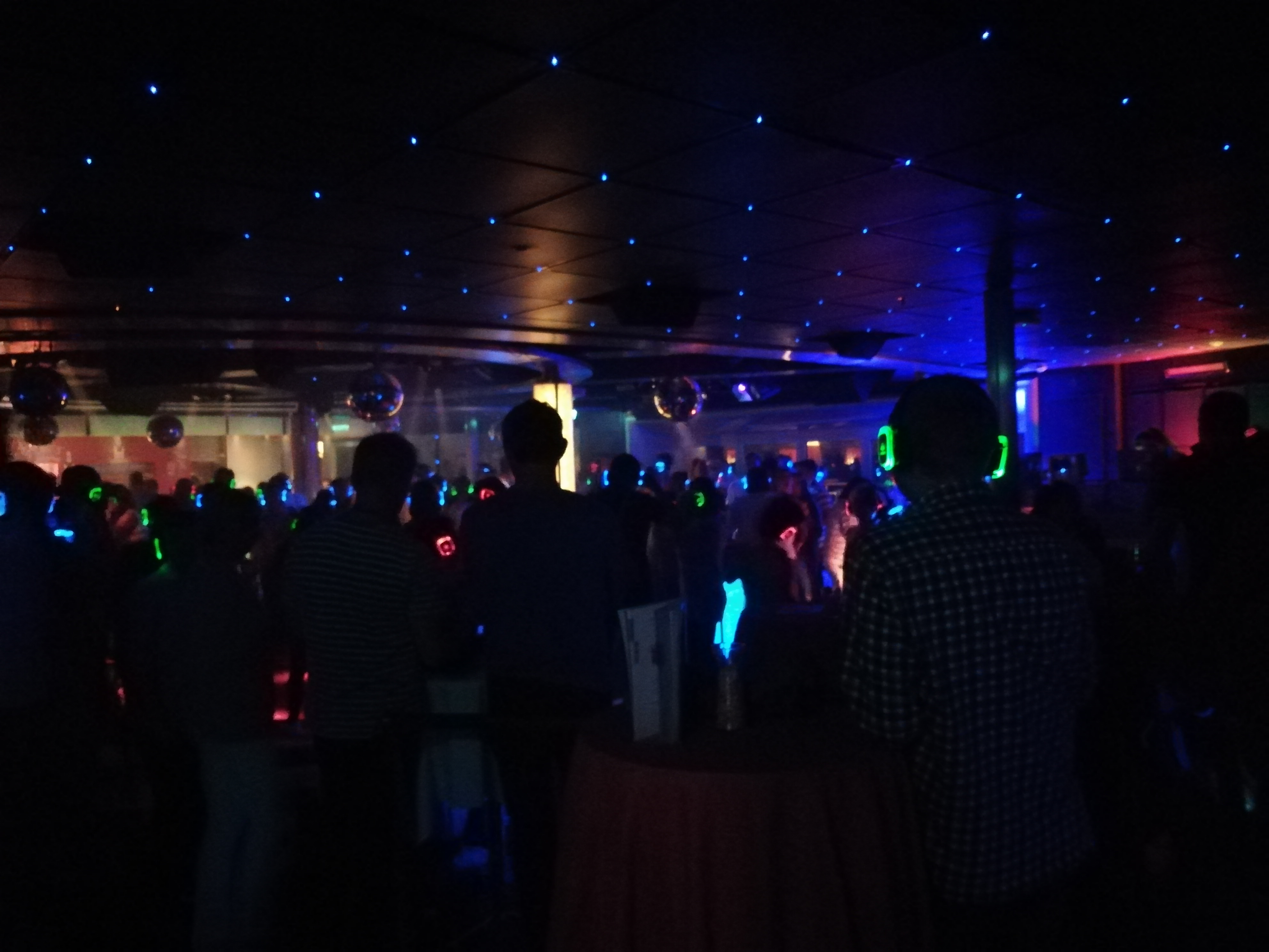 Danach gehen wir noch rauf in die Anytime Bar, um uns die in der Aida Heute beworbene Silent Party anzuschauen.