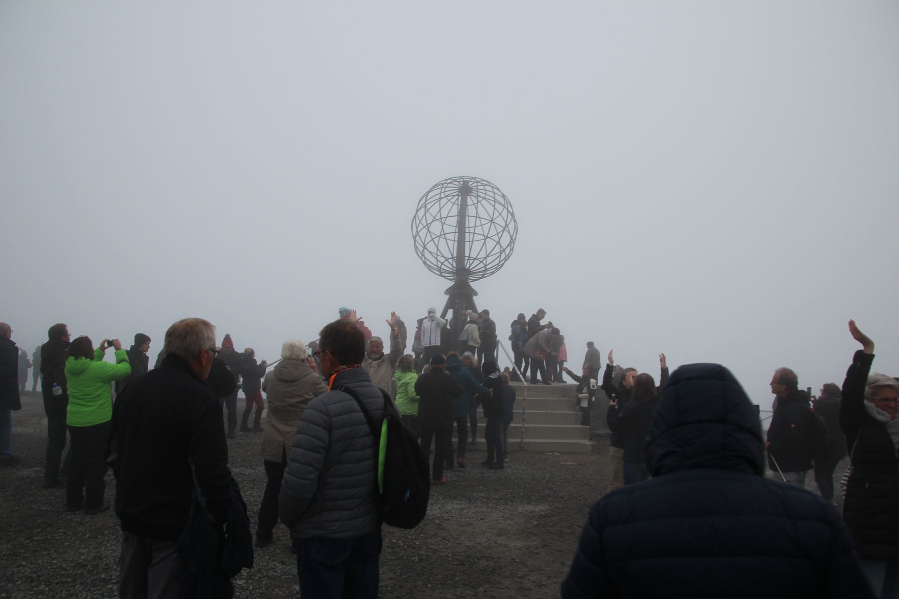 Nachdem wir im Theatrium die Show des Gastkünstlers Don Clarke besucht haben, kamen wir um 23 Uhr in Honningsvag an. Unser Ausflug „HVG01-Fahrt zum Nordkap“ startete auch um bereits um 23 Uhr mit Treffpunkt bei den Ausflugsbussen. Bereits um 22.25 Uhr standen alle im Treppenhaus an, um eine halbe Stunde später vom Schiff zu kommen. Das war schon etwas nervig. Aber alle kamen zu den Bussen. Um 23.15 Uhr ging die Fahrt dann los, kurz vor Mitternacht waren wir am Nordkapfelsen. Leider sahen wir die Nordkapkugel nur im Nebel, aber immerhin, wir haben sie gesehen und standen auch darunter.