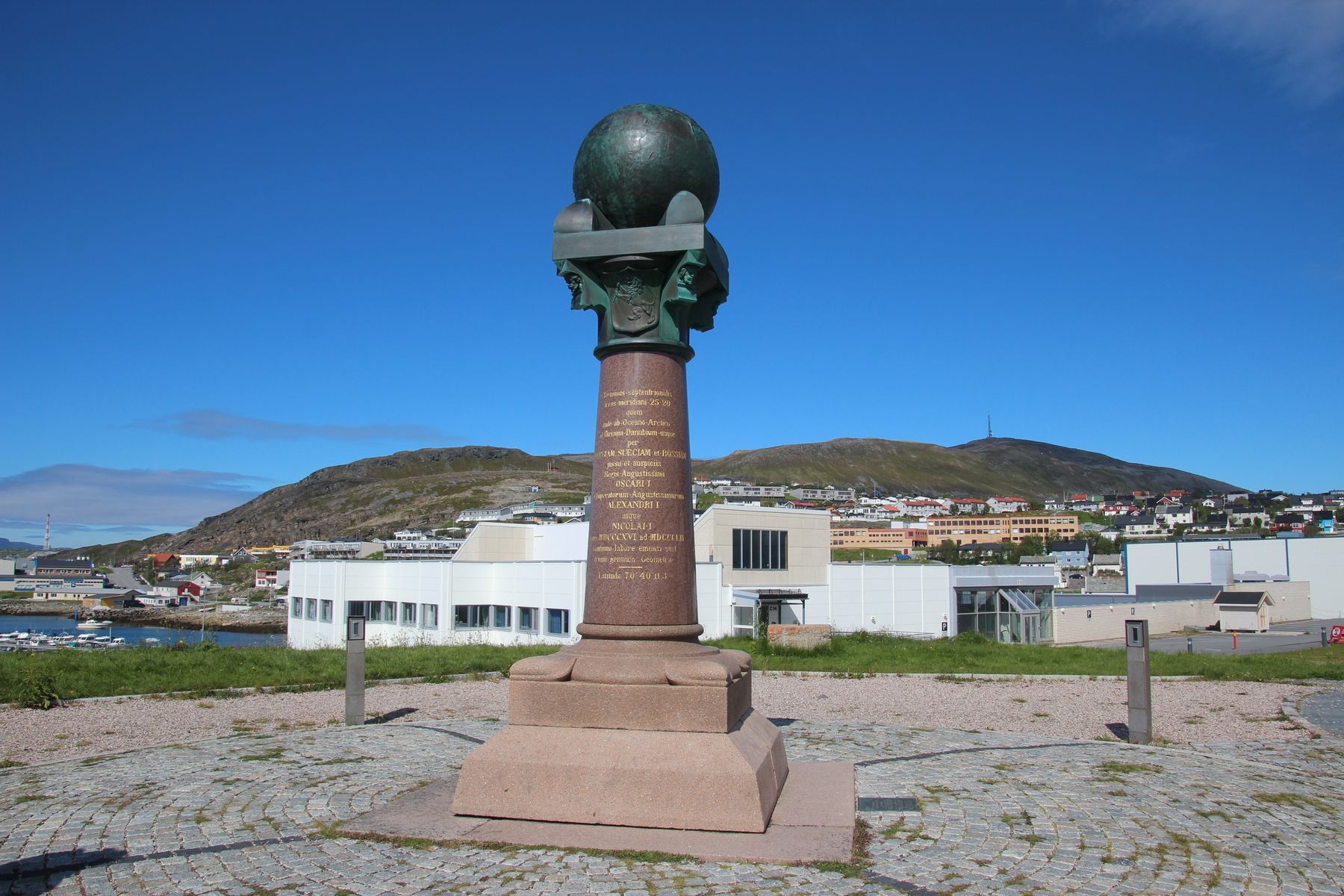 Gegen 12.15 Uhr machten wir uns zu Fuß auf den Weg. Nicht weit entfernt vom Hafen befindet sich die Meridiansäule. Von hier aus wurde 1816-1852 die Erdvermessung mit Längen- und Breitengraden vorgenommen: