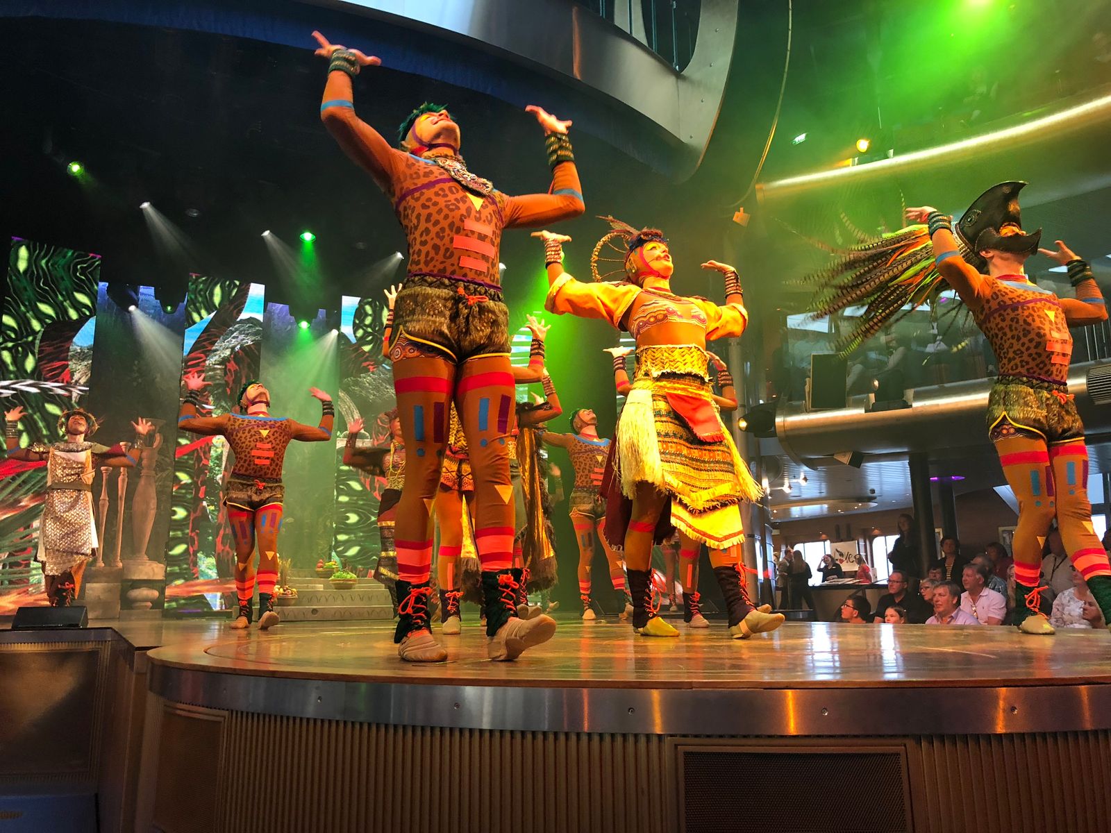 Die Zeit bis zum Abendessen verbrachten wir in der AIDAbar mit Gesellschaftsspielen, nach dem Abendessen und der Prime Time, bei der Kapitän Mey interviewt wurde, begaben wir uns ins Theatrium. Heute Abend wurde die Exklusivshow „Nayeli“ aufgeführt – einfach nur klasse – die Musik, die Kostüme und tolle Darsteller rundeten die Show ab: