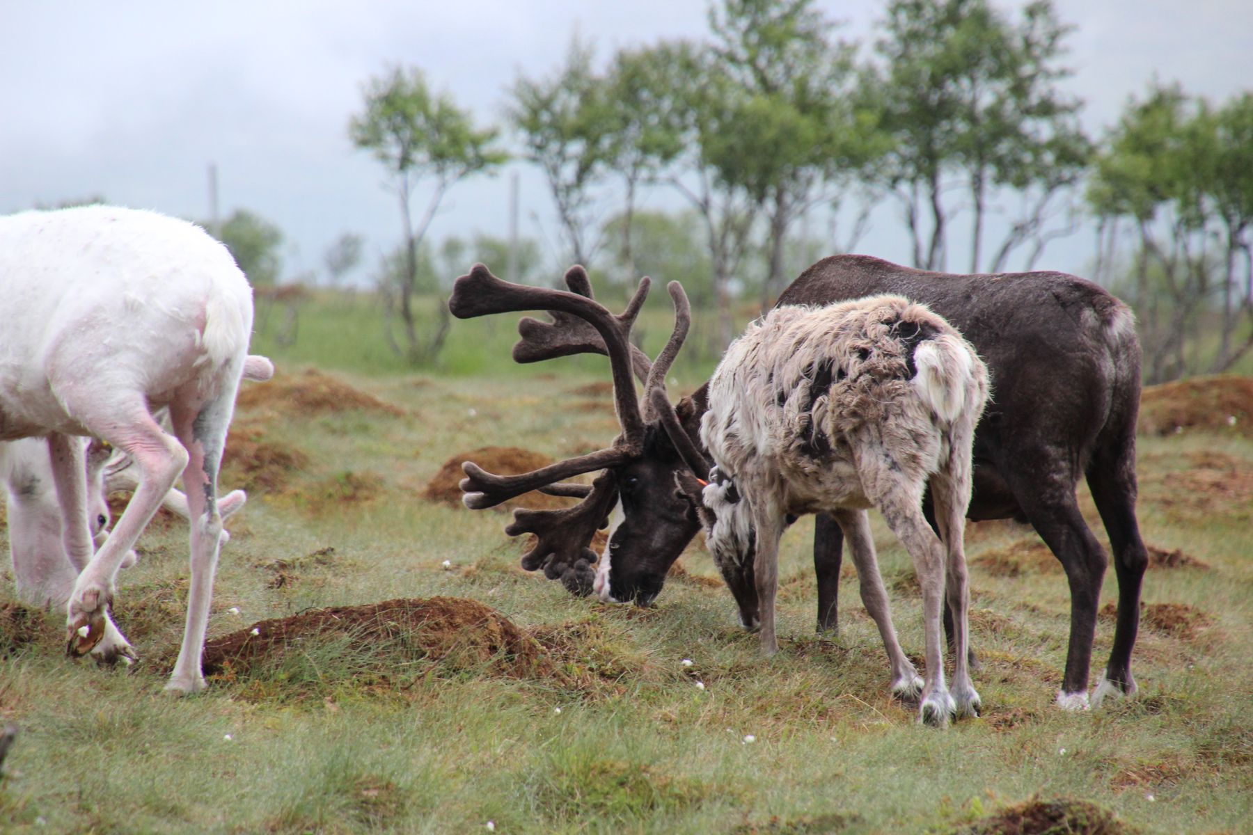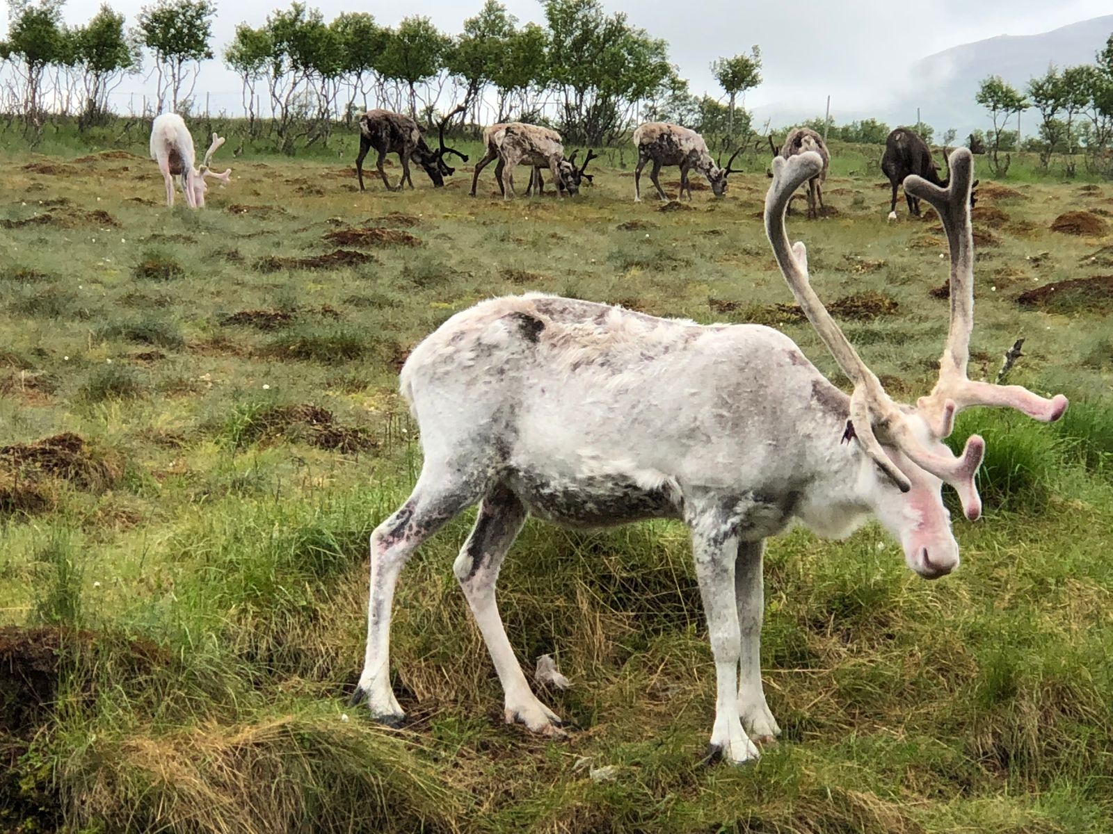Da wir im Vorfeld über Reiseführer und Internet sehr wenig Information erhalten konnten, haben wir uns für 2 AIDA-Ausflüge entschieden. Am Vormittag hatten wir den Ausflug SLX 02 „Das Leben der Samen“ gebucht. Dieser Ausflug war spitze. Wir sind nur mit einem Bus zu unserer Uhrzeit (8.45 Uhr) unterwegs gewesen. Nach 10 Minuten waren wir bereits im Sami-Camp Inga Samii Süde. Es handelt sich um einen samischen Familienbetrieb, der eine Rentierherde besitzt und den Lebensunterhalt durch Schlachtung und Verkauf des Fleisches, der Felle etc. verdient. Zu Beginn wurde ein Kaffee angeboten. Laila, die Dame des Hauses, informierte sehr kurzweilig und interessant in einem Sami-Zelt über die Geschichte der Samen, ihren Betrieb und ihre Arbeit mit den Rentieren etc. Sie „joikte“ auch. Der Joik ist ein eintönig gutturaler Gesang der Samen. Etwas gewöhnungsbedürftig, aber nachdem Laila den Hintergrund erklärt hatte (z.B. wird jeder Joik spontan und ohne Wiederholungen gesungen, jedes „Lied“ ist anders), war es sehr interessant zuzuhören.