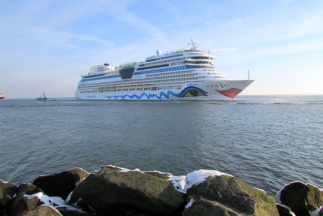 Schnell näherte sich AIDAstella uns, wurde von Minute zu Minute größer, länger, höher ... Ein Superlativ eines Kreuzfahrtraums! Das durchdringende Typhon ertönte, ein Gänsehaut-Moment, aber nicht wegen der Kälte.