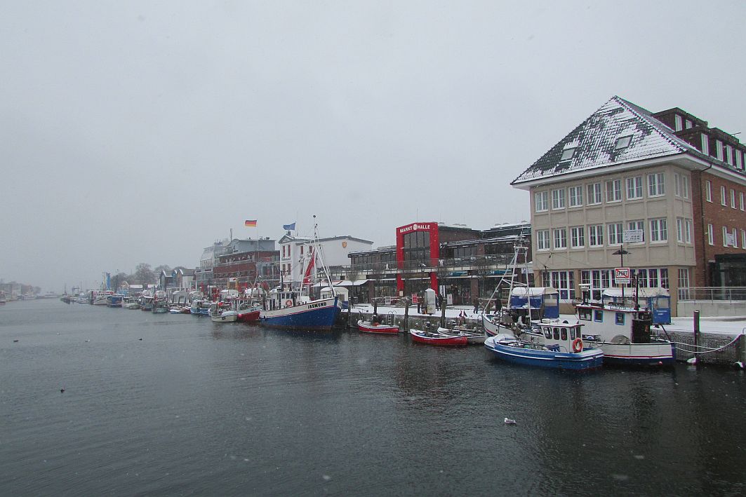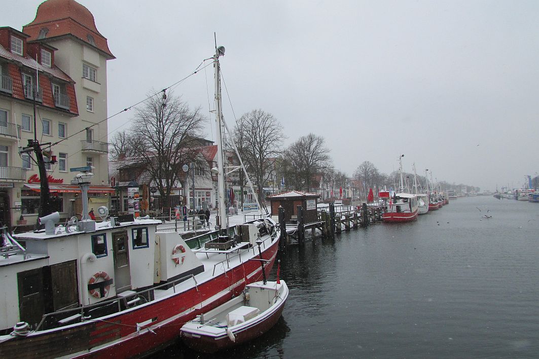 In der „Klön Klause“ kehrten wir auf einen letzten leckeren heißen Sanddornsaft ein. Im Hintergrund lief ein Radio, wo gerade für die Küste von Mecklenburg-Vorpommern eine Unwetterwarnung vor starkem, anhaltendem Schneefall und starken Verwehungen herausgegeben wurde. Na toll, hoffentlich fährt der Zug ... Wir wollten einmal Winter an der Ostsee haben, jetzt hatten wir ihn. Aber auch das muss man einmal miterlebt haben. Selbst unsere Lieblings-Glühweinbude war geschlossen. Da hätte sich bei diesem Wetter sicherlich auch keiner hingestellt.