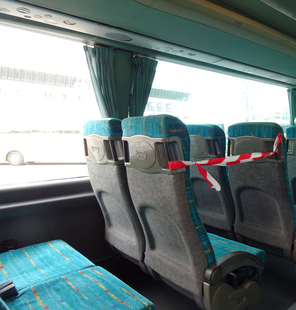 Hier campieren wir nun die nächsten 3 Stunden in einem markierten Abschnitt, isoliert von der Außenwelt. Der Rucksack landet zwischen den beiden Liegen. Freiheit für die Teddys, wir sitzen ab jetzt oben drauf. Eigentlich war die umgedrehte Kappe ja als Sitzgelegenheit für uns vorgesehen, aber die hat der ja pfiffiger Weise im Bus liegen lassen und der ist im Moment unterwegs zum Flughafen und meine Sitzgelegenheit wird daher wohl bald den Kopf eines Neuankömmlings zieren. Denn überraschenderweise bleibt der Bus nicht vor Ort, sondern wird zwischenzeitlich zum Transfer aidafremder Personen genutzt. Das Bubble-Konzept zeigt seine Schwächen, bzw. hat die Bubble ein Loch.