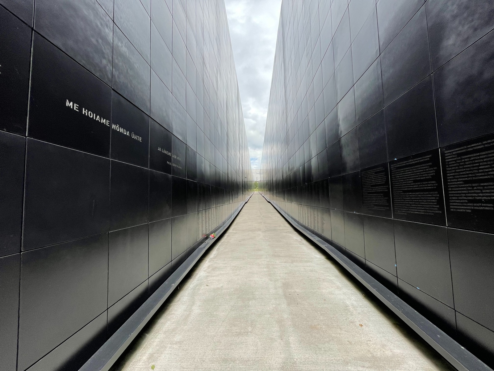 Denkmal an die ermordeten während der sowjet Zeit. ( die Namen sind eingraviert in dem Gang ) Unsere Reiseführerin sprach gut deutsch und erzählte selber wie es ihren Großeltern ging und zeigte die Namen ihrer Familie dort. War recht bewegend.