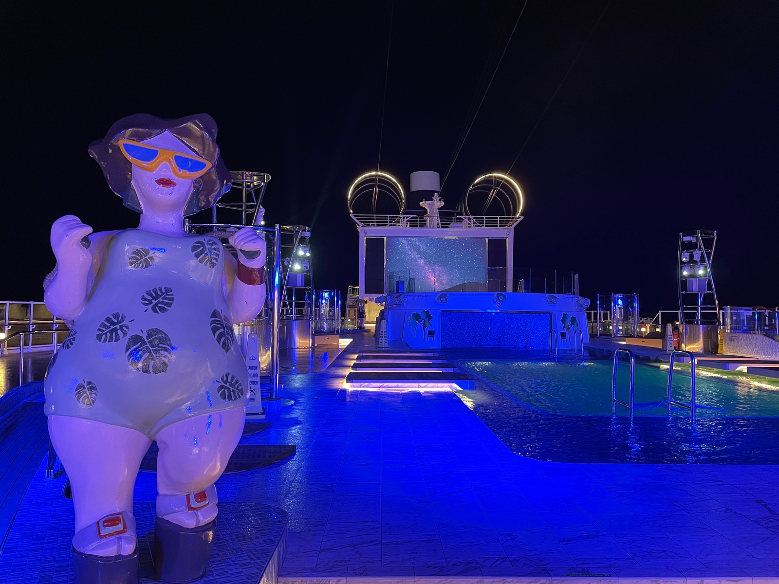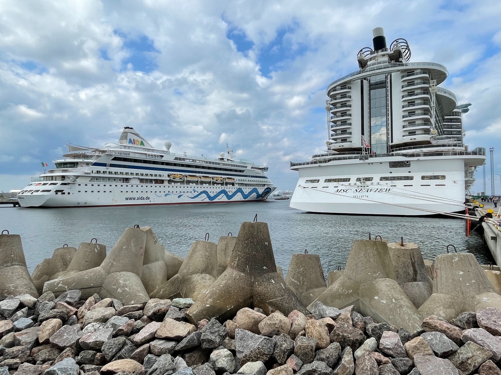Nochmal ein Bild bei schönem Wetter. Das neue Cruise Terminal finde ich super. Kamen sogar einige zum auslaufen her. Auf dem blauen Feld ist ein Spielplatz und links geht ein Weg weiter mit schattenplätze. Darunter ist der Weg wenn man beim Ausflug zu seinem