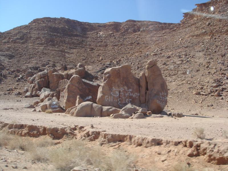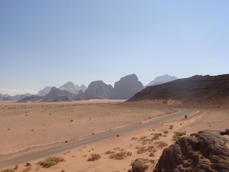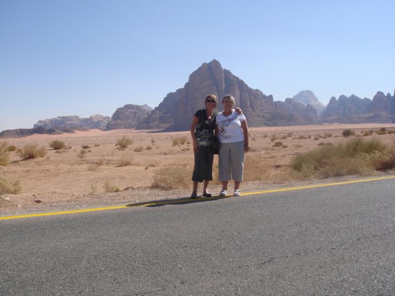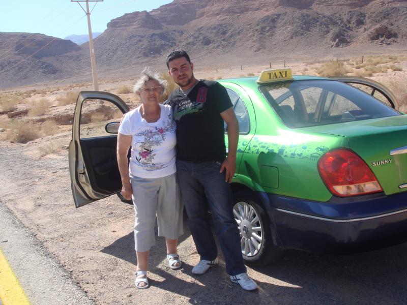 Ich unterhalte mich mit dem Fahrer, ich sprach als einzige ein gutes englisch und dolmetschte für die Mitreisenden. Auf meine Frage, ob er denn auch andere Touren mache, sagte er natürlich, nach Petra z.B. Er würde uns auch hinfahren, wenn wir wollten. Aber uns war es zu weit und die beiden netten Damen hatten ja ihren Männer versprochen, in einer Stunde wieder da zu sein. Da können sie auf keinen Fall den ganzen Nachmittag wegbleiben. Wir hatten alle keine Handys dabei. Ob er denn auch zum Wadi Rum fahren würde und was es dann kostet. Er überlegt kurz, gute 2 Stunden - 20 Euro für jeden. Ich hatte Lust, meine Mutti und die zwei anderen natürlich auch. So dreht der Taxifahrer kurz um und wir suchten den männlichen Anhang der beiden Frauen. Er sagte immer ... "no Probläm to luk for jur Hoschbänd" . Es war ein Vergnügen, ihm zuzuhören und die Aussprache super. Bald waren sie auf der Strandpromenade gefunden. Kurze Diskussion unter den Ehepaaren, Kamera noch schnell ins Auto rein, Geld gezückt (zum Glück hatte ich mir genügend eingesteckt) und so fuhren wir los. Ohne einen Tropfen Sonnenöl dabei, ohne einen Schluck Wasser, mit ein paar Euros in der Tasche. Wenn mir das jemand am Morgen prophezeit hätte, ich glaube, ich hätte mich schlapp gelacht.