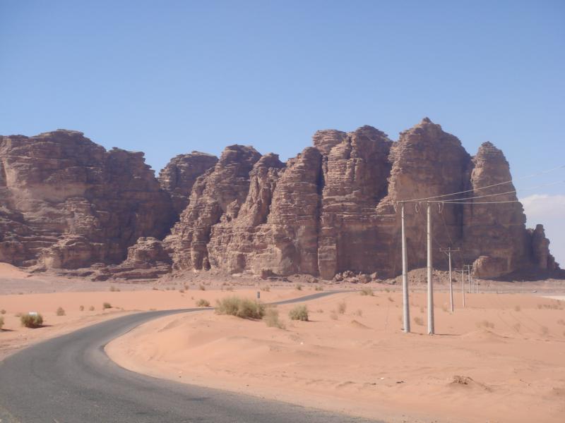 Man hörte den Wind, manchmal einen Vogel rufen und wir rochen die trockene Erde, die stellenweise rostrot war. Ein großer Teil des bekannten Films „Lawrence von Arabien“ wurde hier gedreht. Natürlich sind wir einen riesigen Sandberg hochgeklettert und Mutti bewachte derweil die Taxe. Der Fahrer machte Fotos von uns. Weiter ging es und als wir die Schienen einer Eisenbahn überquerten, schaltete der Taxifahrer den Motor aus und sagte, Motor defekt. Er grinste, war nur ein Scherz.