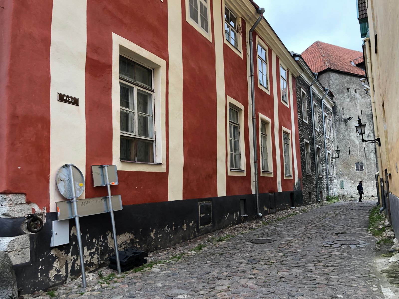 Hier bestaunten wir die orthodoxe Alexander-Newski-Kathedrale, die in wunderschönen Farben leuchtete, das Schloss, in dem das Parlament untergebracht ist, den Garten des Dänischen Königs und die Domkirche – erst mal alles von außen, um einen Überblick zu bekommen und vor allem, die Gebäude vor dem Regen zu sehen. Aber auch unterwegs bemerkten wir immer wieder interessante Details an den Häusern, so an der estnischen Schauspielschule diese Gedenktafel an einen estnischen Schauspieler: