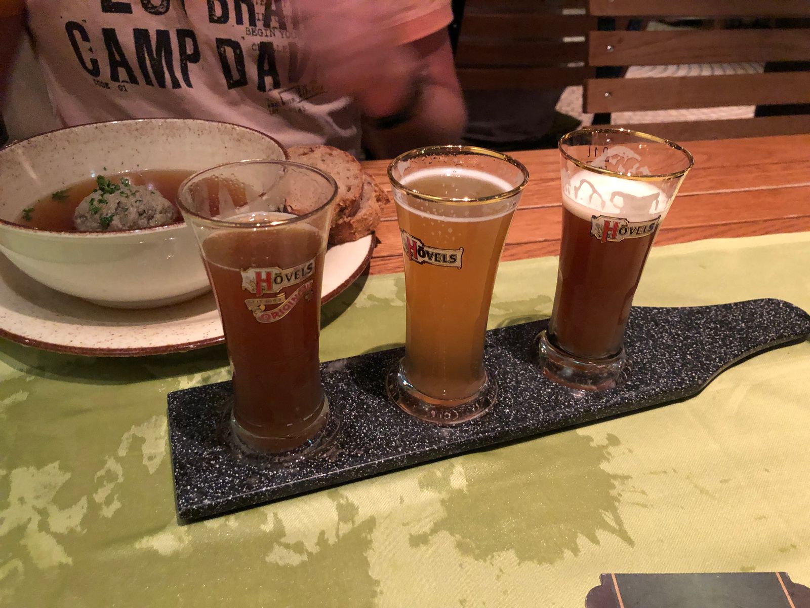 Da wir vorher noch nie auf einem „Brauhausschiff“ waren, gab es an diesem Abend eine Premiere für uns: das erste Mal aßen wir im Brauhaus. Es war lecker, insbesondere die 3 Biersorten gefielen: