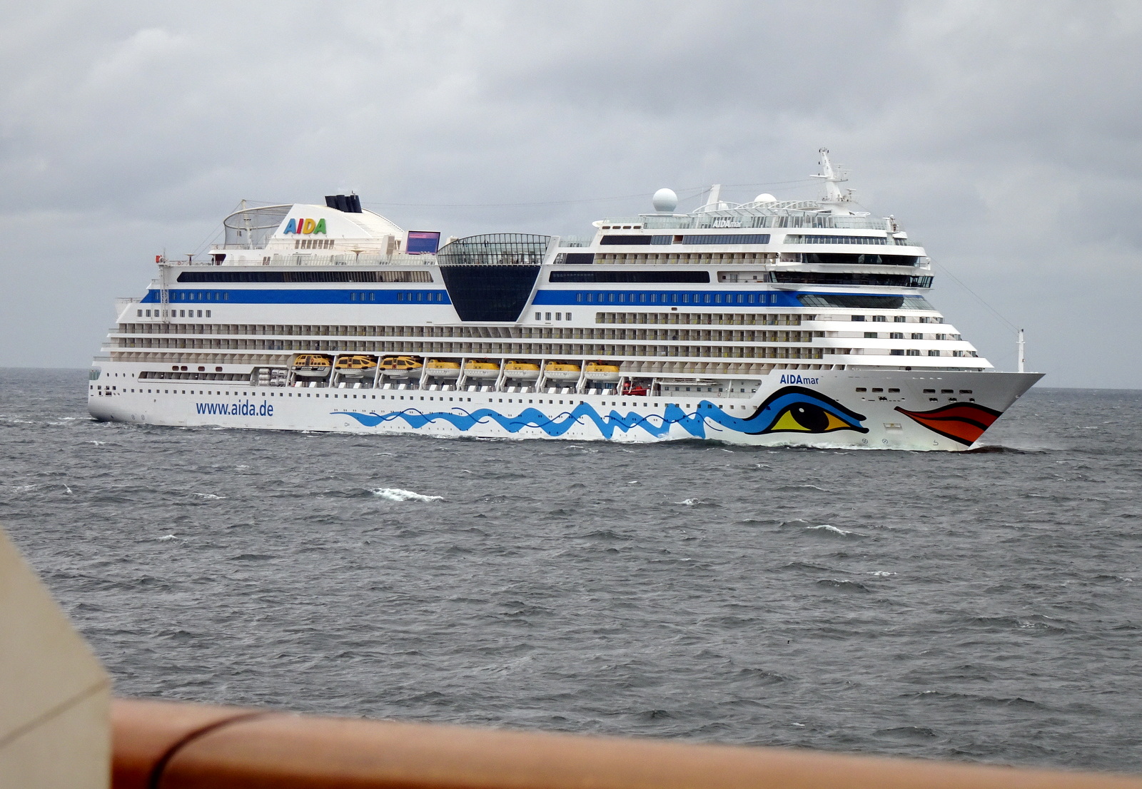 Unterdessen taucht hinter uns, wie vom Kapitän schon angekündigt, die AIDA Mar auf.