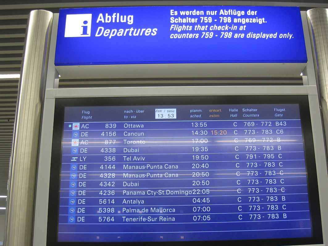 Bei meiner Ankunft in Nürnberg sehe ich doch tatsächlich schon ein Paar mit AIDA-Anhängern an ihren Koffern. Ja, das Virus hat um sich gegriffen. Als der ICE den Bahnhof in Richtung Frankfurt Flughafen verlässt, scheint die Sonne von einem mittlerweile blauen Himmel. Und auch der Schnee wird in Richtung Maintal immer weniger. Die Frankfurter Skyline grüßt und ich komme auf die Minute genau (das habe ich auch schon ganz anders erlebt) auf dem Fernbahnhof an. Nach gefühlten fünf Kilometern durch endlose Gänge, über Laufbänder und Rolltreppen erreichte ich endlich den Condor-Schalter im Terminal 1.