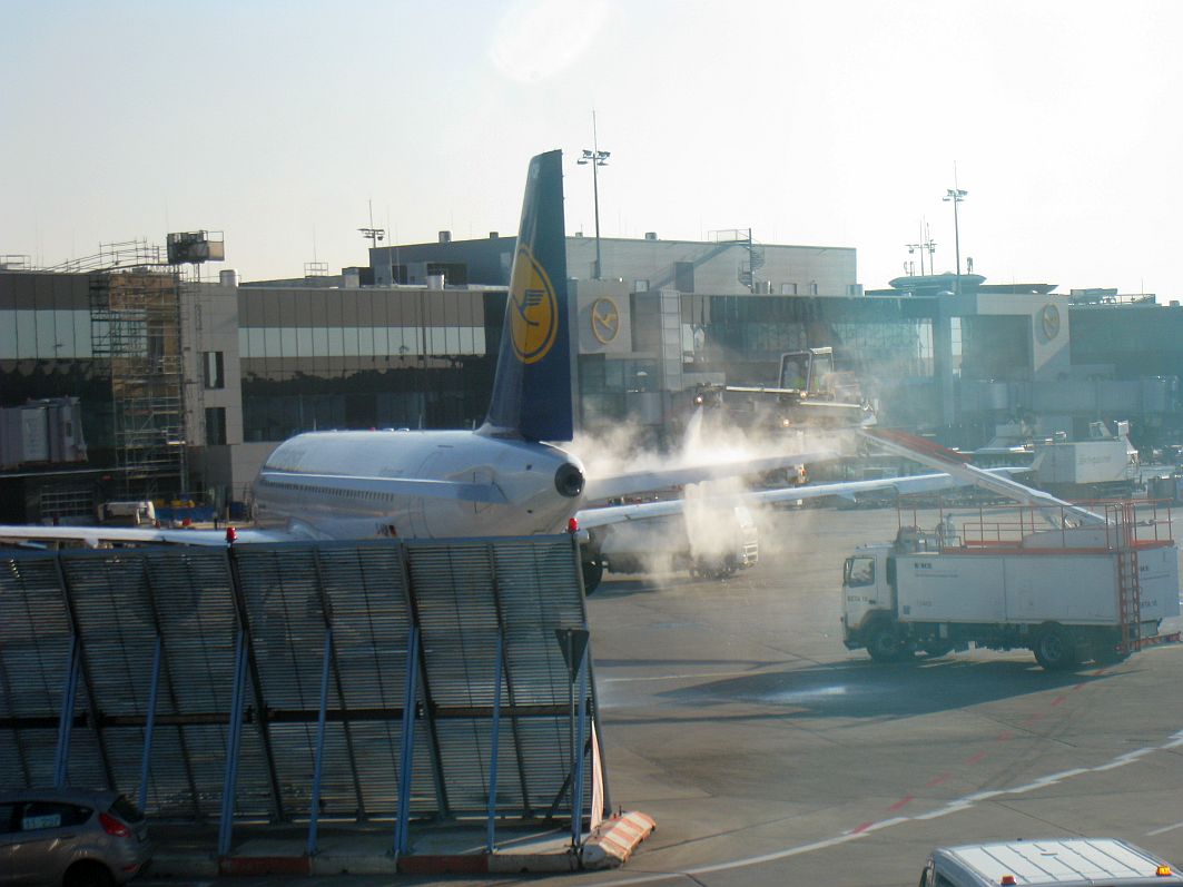 Bei einem Cappuccino beobachte ich, wie bei minus 4 Grad die Flugzeuge enteist werden. Eine völlig neue Erfahrung, kannte ich das doch bisher nur aus dem Fernsehen.