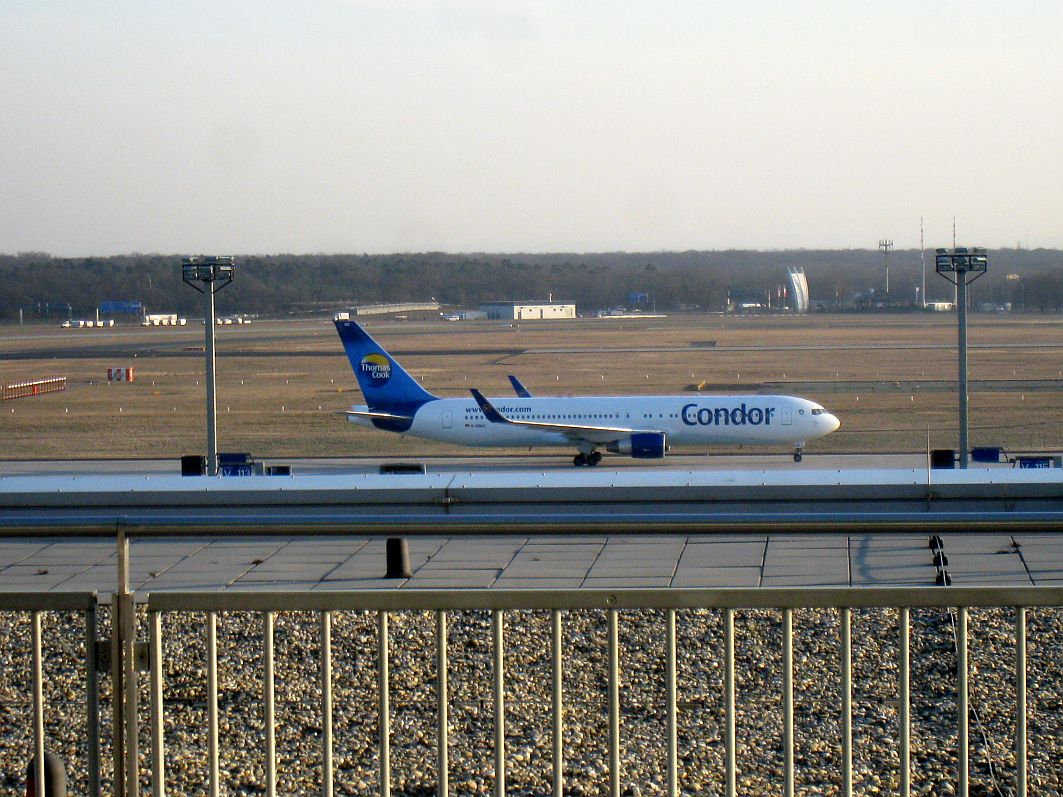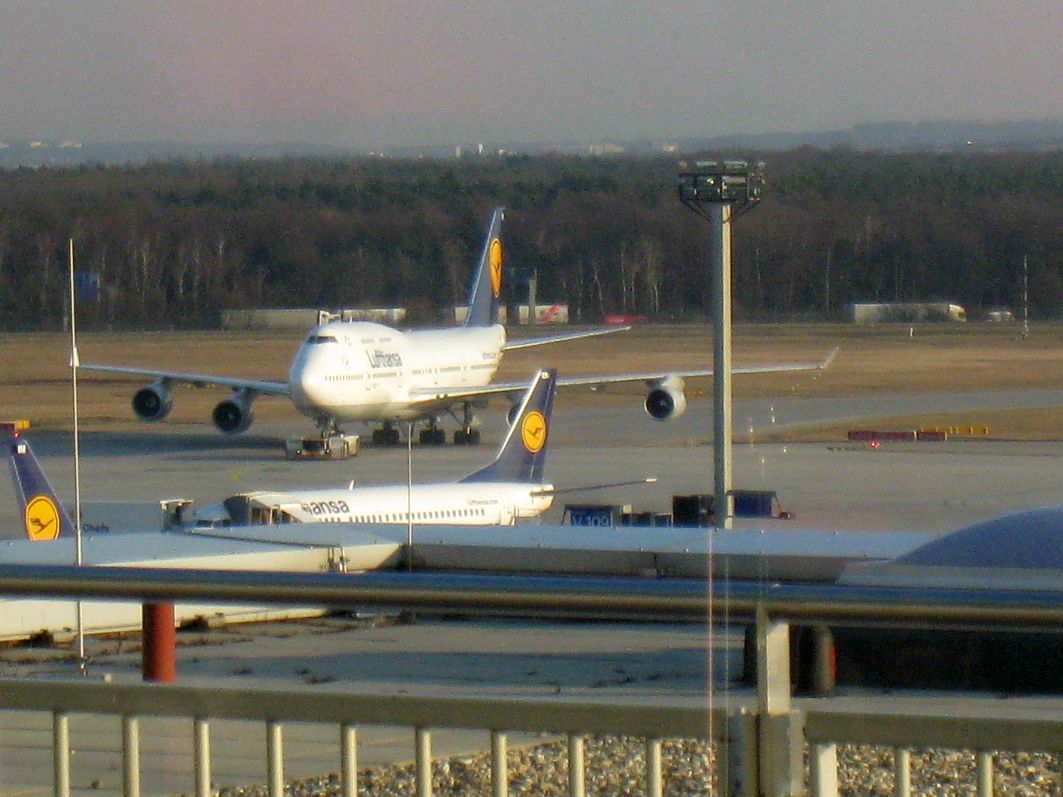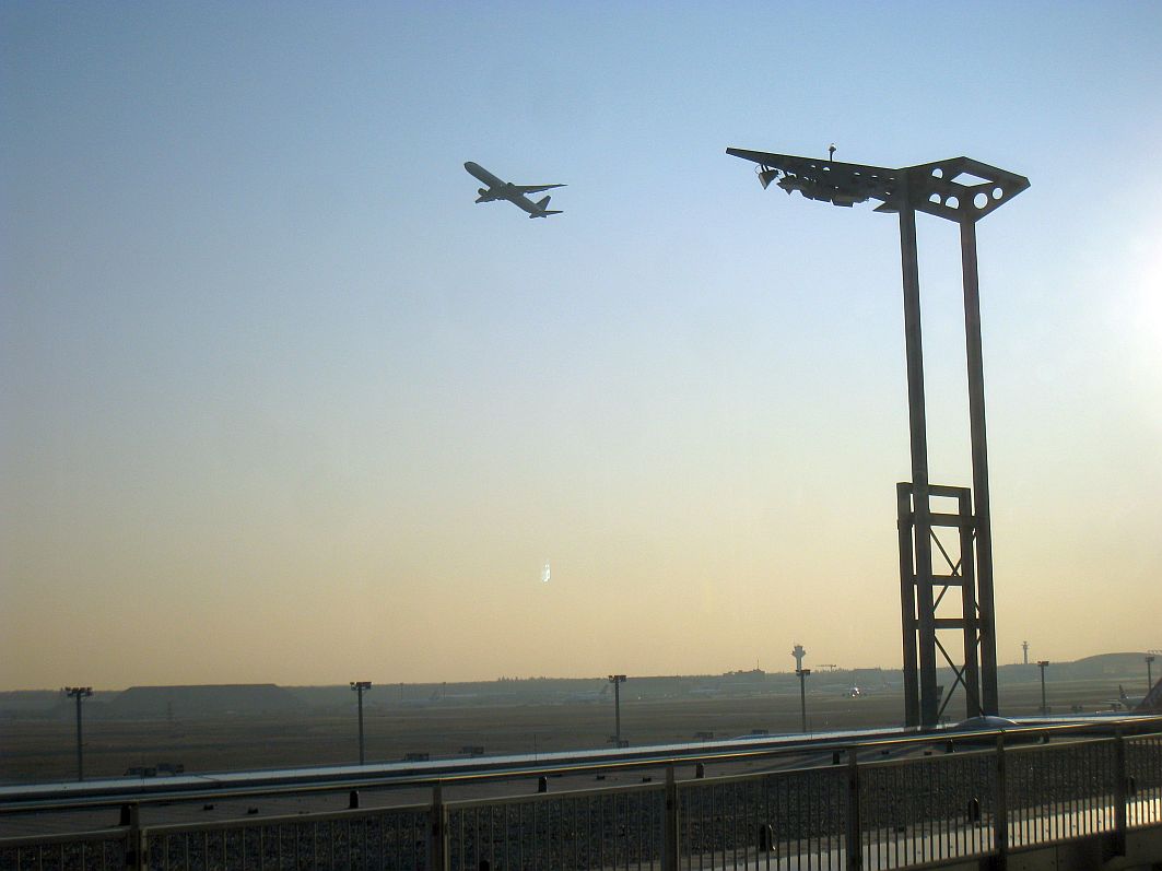 Dann mit dem Flughafenbus zum Terminal 2, wo ich in der langsam sinkenden Sonne von der Besucherterrasse Starts und Landungen beobachte.