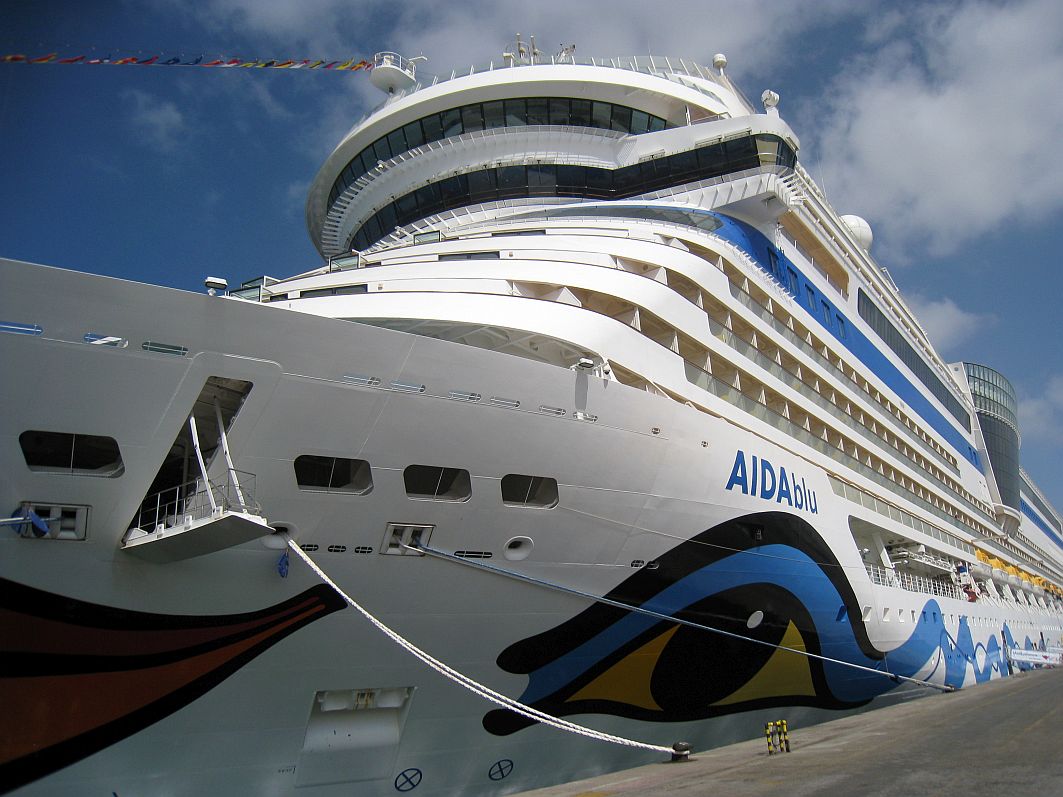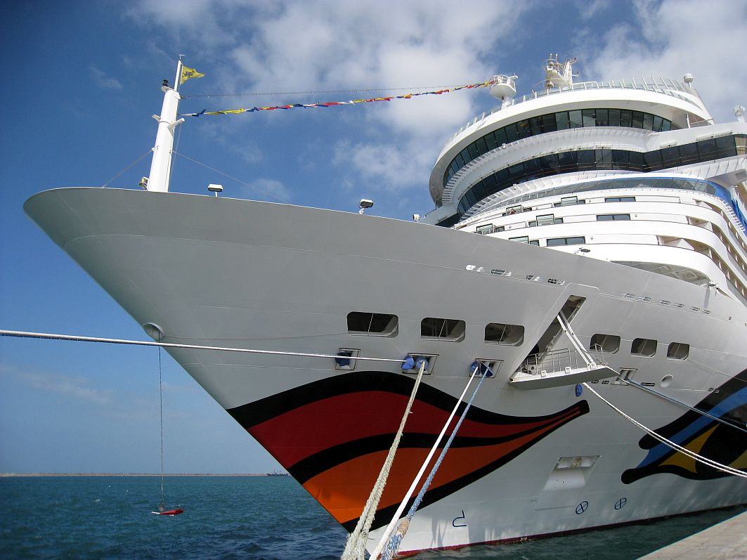 Schnell zum Gepäckband, wo ich dann doch kurzzeitig etwas nervös werde, als mein Koffer so gar nicht kommt. Aber freundliche AIDA-Mitarbeiter haben einen Teil der Koffer auf der anderen Seite schon vom Gepäckband geholt, und hier ist mein Koffer glücklicherweise dabei. So, jetzt kann der Urlaub wirklich beginnen. Ein kurzer Anruf zu Hause im fernen und eiskalten Deutschland, wo ich meine Lieben durch die Zeitverschiebung von drei Stunden aus dem Schlaf klingele (aber da müssen sie durch), und schon geht’s in Richtung der AIDA-Shuttlebusse. Verlaufen unmöglich, denn tatsächlich steht alle paar Meter jemand mit einem AIDAblu-Schild.