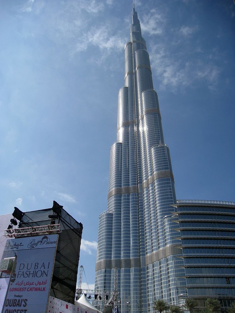 Und hier gibt es ein Phänomen, das man immer und immer wieder beobachten kann: Menschen legen sich auf den Boden oder verrenken sich in den unmöglichsten Positionen. Und das nur, um den besten Blick auf den 828 Meter hohen in der Sonne glänzenden Turm zu bekommen. Es ist schwer, ihn aus dieser Entfernung überhaupt einigermaßen in seiner ganzen Pracht aufs Foto zu bannen, und auch mir will es nicht ganz gelingen. Vielleicht hätte ich mich auch einfach mal zwischen Tausenden Touristen aus aller Herren Länder auf den Boden legen sollen?!