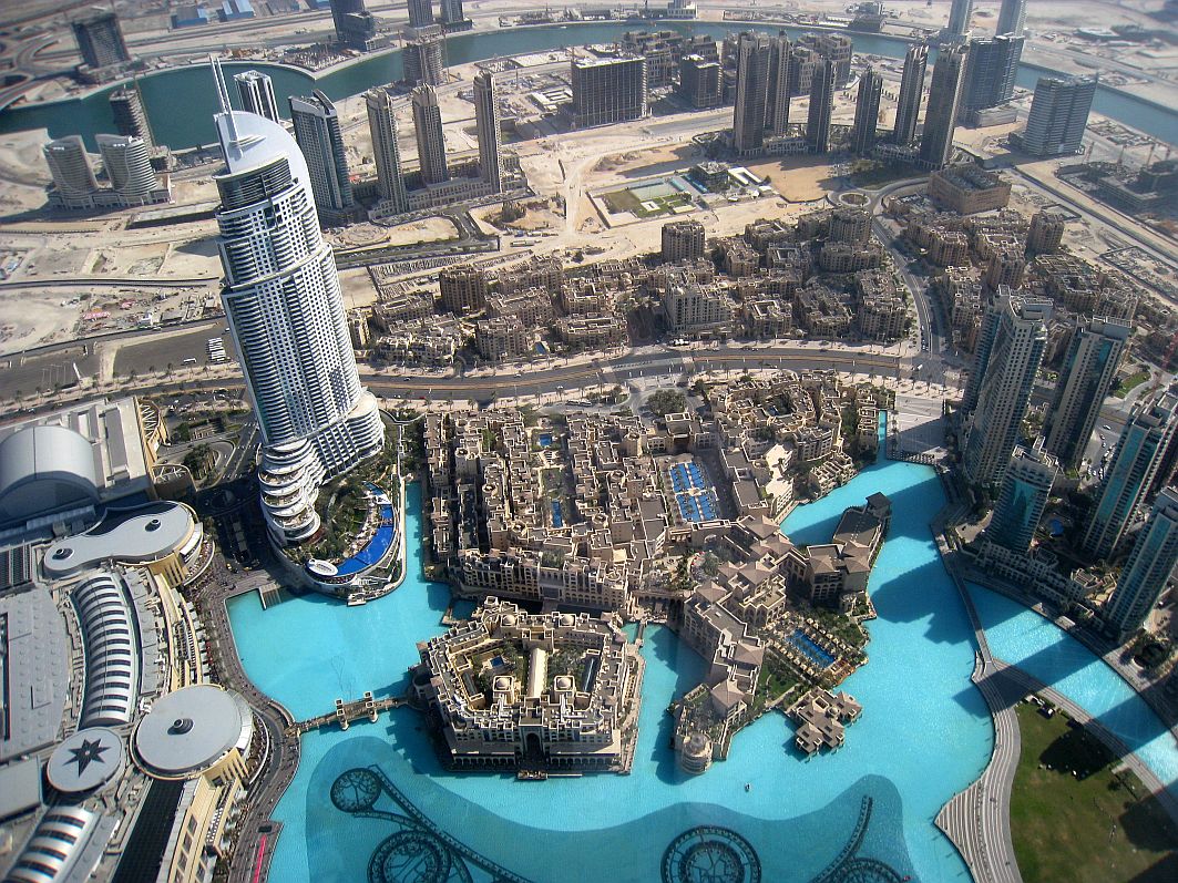 Klein wie Spielzeug: die Dubai Fountains und das Hotel „The Address“