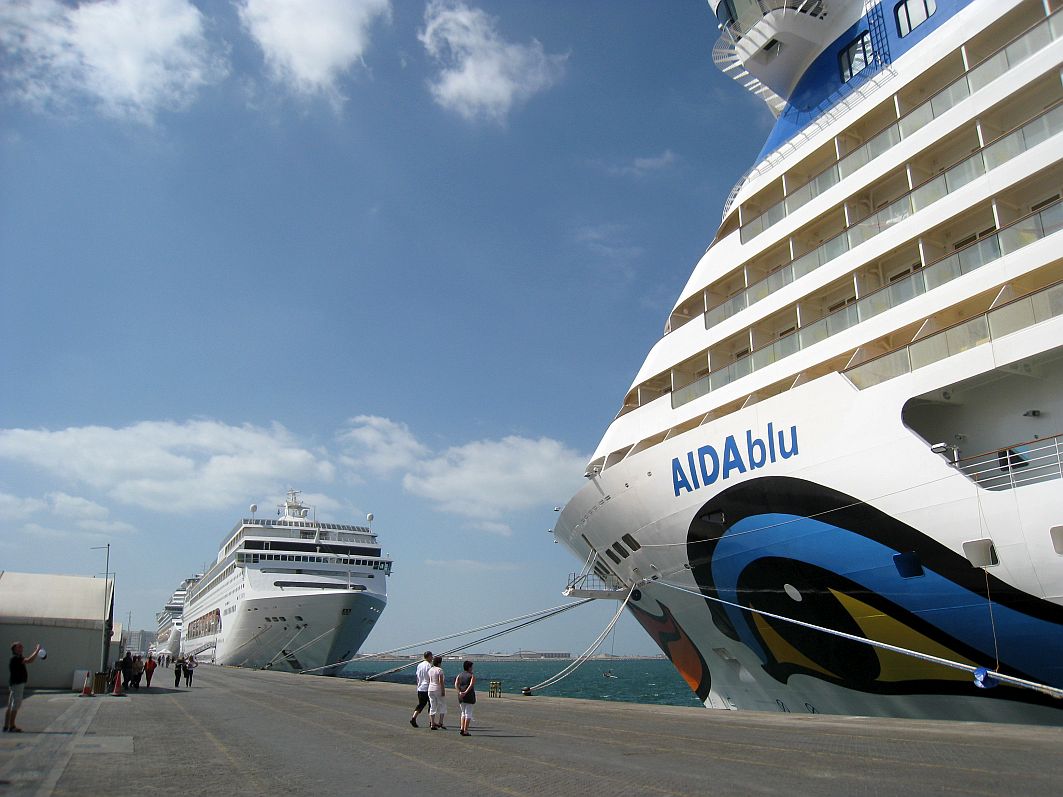 Schnell zum Gepäckband, wo ich dann doch kurzzeitig etwas nervös werde, als mein Koffer so gar nicht kommt. Aber freundliche AIDA-Mitarbeiter haben einen Teil der Koffer auf der anderen Seite schon vom Gepäckband geholt, und hier ist mein Koffer glücklicherweise dabei. So, jetzt kann der Urlaub wirklich beginnen. Ein kurzer Anruf zu Hause im fernen und eiskalten Deutschland, wo ich meine Lieben durch die Zeitverschiebung von drei Stunden aus dem Schlaf klingele (aber da müssen sie durch), und schon geht’s in Richtung der AIDA-Shuttlebusse. Verlaufen unmöglich, denn tatsächlich steht alle paar Meter jemand mit einem AIDAblu-Schild.