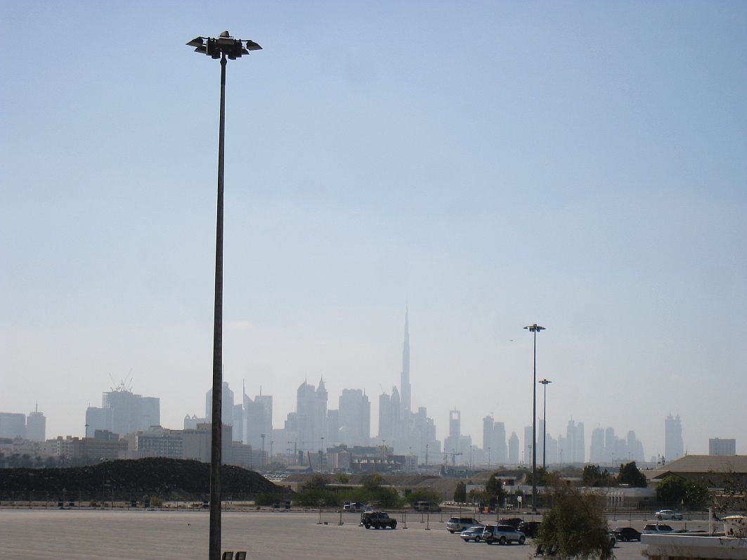 Raus aus dem Flughafen – gerade wird es langsam hell – und zum ersten Mal merke ich: Ja, Winter kann auch angenehm mild sein. Koffer abgegeben und rein in den Bus. Auf geht’s mit Fahrer Imram in Richtung Port Rashid – und ich fühle mich wie in einem Märchen. Irgendwie ist das alles so unreal. Vor wenigen Stunden noch in der Eiseskälte meiner Heimat rolle ich nunmehr an einem angenehm milden Wintermorgen durch die Randgebiete einer der spektakulärsten Städte der Welt. Wahnsinn! Ich bin tatsächlich da!