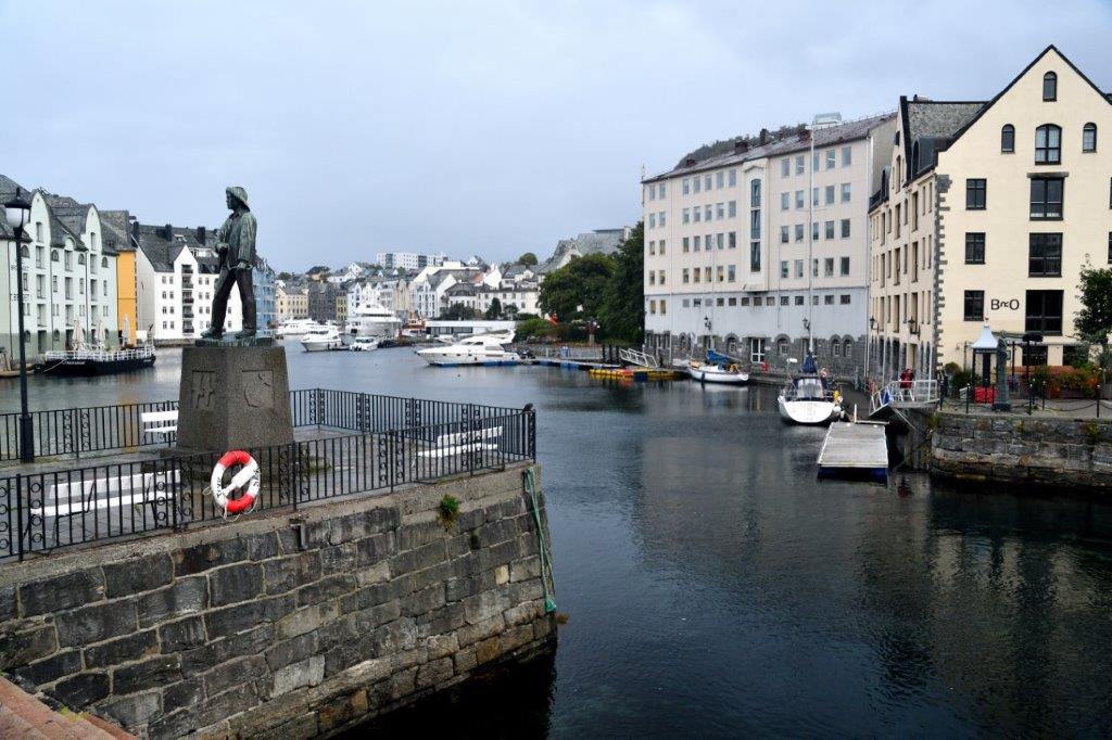 Nun aber los mit unserer kurzen Stadtvisite. Wir verließen das Schiff und stießen nach wenigen Minuten auf den Ålesundet, der die Jugendstilinsel Aspøy von einer weiteren Stadtinsel, nämlich Nørvøya, trennt.
