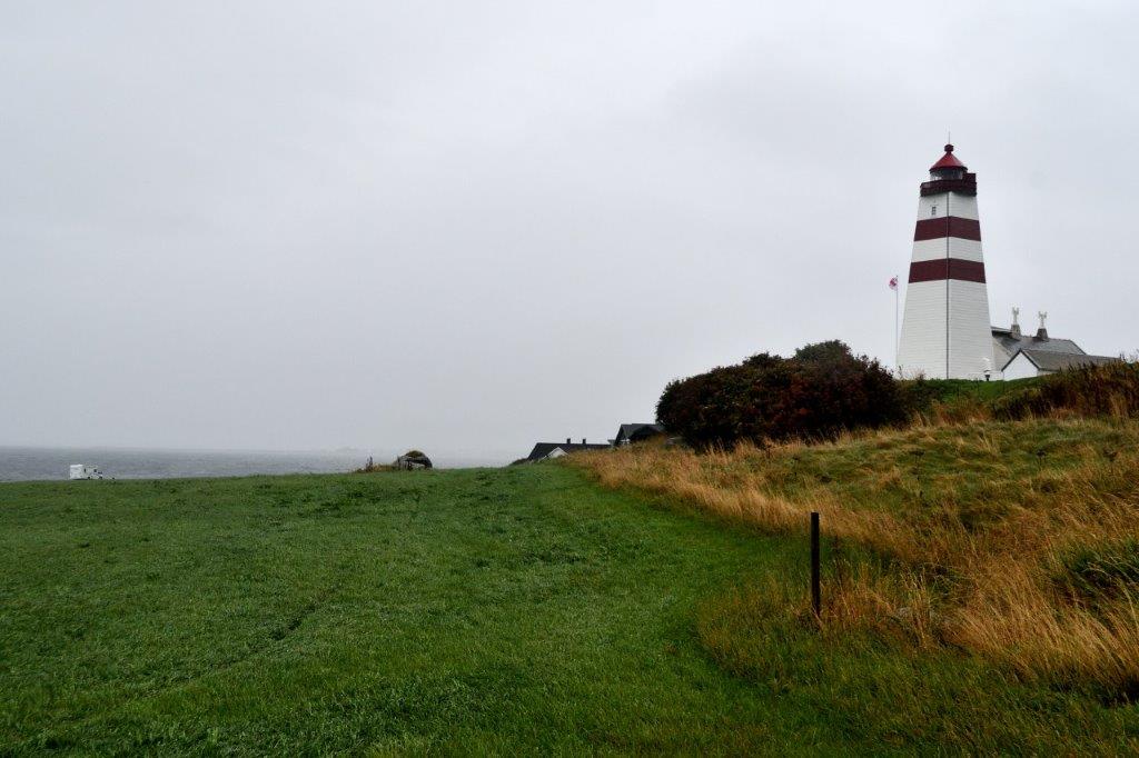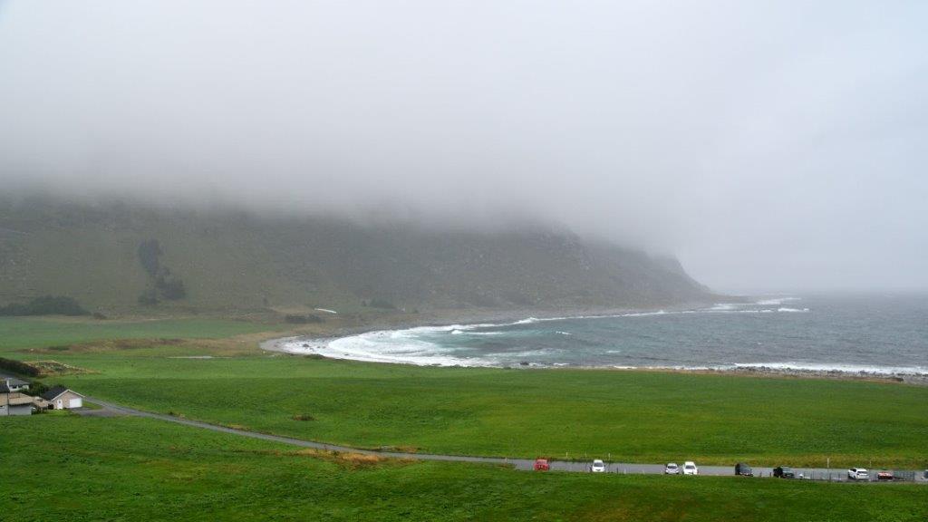 Seit knapp zwei Jahrzehnten fungiert der sich wunderbar vom grauen Himmel abhebende Leuchtturm als Kulturzentrum der Umgebung. Gut war, dass wir den Leuchtturm besichtigen und – zum Glück von innen – erklimmen konnten. Im Leuchtturm regnete es nicht! Von der Aussichtsgalerie hatten wir einen phantastischen Rundblick! Auf die weite, von einem Bergrücken begrenzte Bucht.