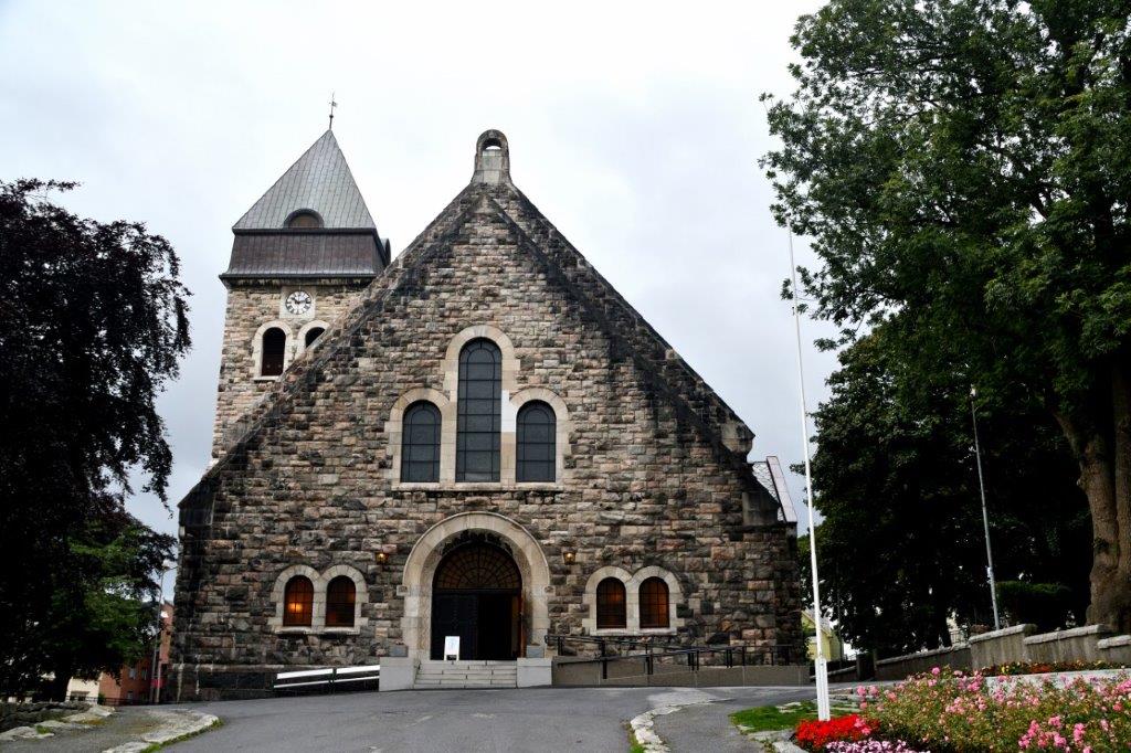 Wir bummelten durch die Sträßchen und blieben immer wieder stehen, um die alten Häuser zu bewundern. Schließlich standen wir – sogar planmäßig! – vor der Ålesund Kirke. Sie wurde nach dem großen Brand im neoromanischen Stil wieder aufgebaut und 1909 eingeweiht. Die Fenster stiftete Kaiser Wilhelm II.