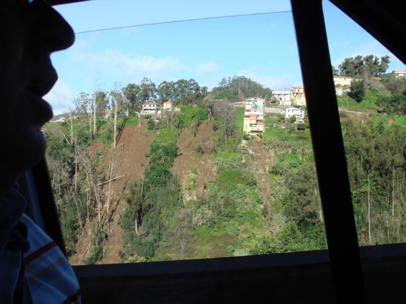 Er sei ganz stolz darauf, dass die Einheimischen ohne schnelle Hilfe Portugals nach dieser Katastrophe sofort die Ärmel hochgekrempelt haben, um soweit es möglich war, wieder eine Normalität herzustellen. Natürlich waren einige Straßen noch gesperrt, zumal es einen Tag vor unserer Ankunft dort wieder heftig geregnet hatte und es wieder zu Erdabrutschen gekommen war. Neben den bizarren Berggipfel immer wieder ein trauriger Blick auf die Straßen, die jetzt frei gemacht werden müssen.