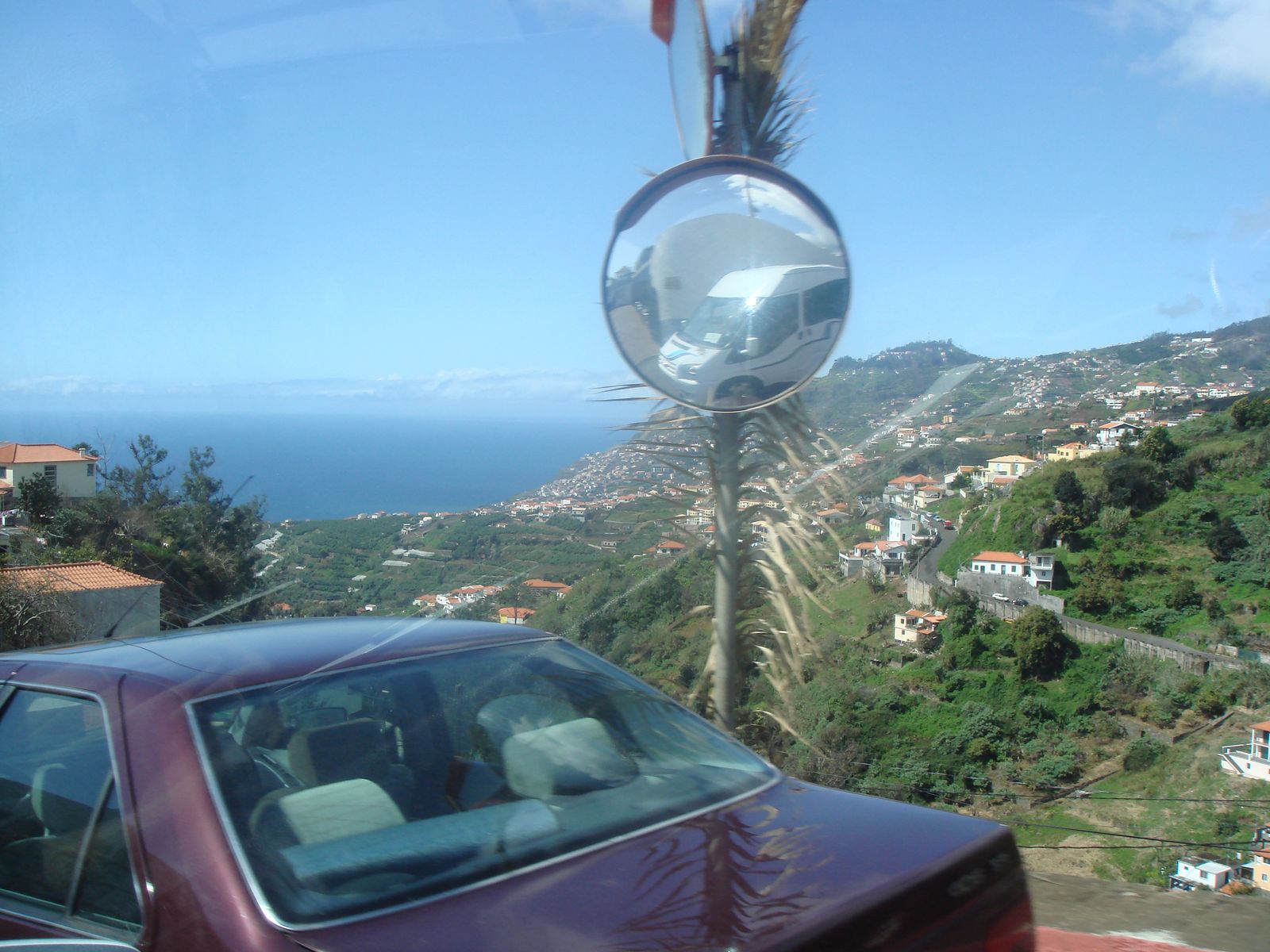 Von zu Hause hatten wir eine Tour bei einem ortsansässigen Unternehmen gebucht, den Ausflug ins "Tal der Nonnen". Vor der Bella war eine einheimische Tanzgruppe eingetroffen und uns Passagiere. Ein wenig schauten wir zu und dann holte uns der Fahrer ab und brachte uns zur Zentrale des Unternehmens. Zu unserer Freude waren wir dann nur zu acht, also wir 4 von der AIDA sowie 1 deutsches und ein englisches Paar, die Urlaub auf der Insel machen. An der zentrale bestiegen wir einen Kleinbus und der Fahrer konnte sehr gut deutsch sprechen. So war schon mal sicher, dass wir ausreichend Informationen über die Insel bekommen. Wie man ja schon vom Hafen aus sehen konnte, die Berge beginnen in untermittelbarer Nähe und so schlängelte der Bus die Straße hoch. Immer wieder hielt der Fahrer an und wir konnten Fotos machen.