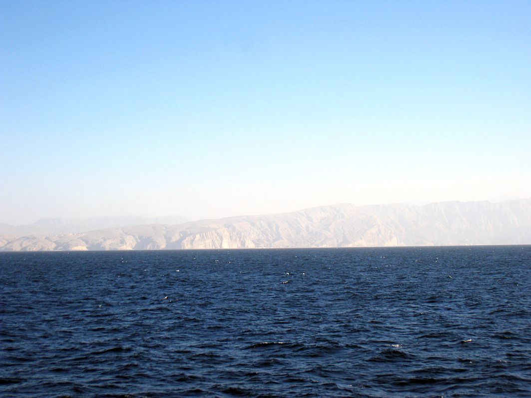 Karge Küstenlandschaften wie diese hier ziehen am Nachmittag an uns vorbei, während wir uns der Straße von Hormus nähern.