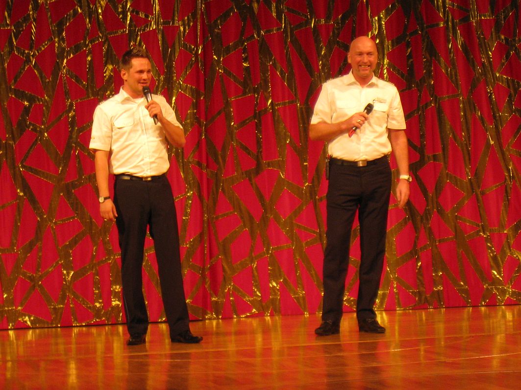 Ab 20:30 Uhr wird’s artistisch und akrobatisch. Im Theatrium wird die Show „Varieté Varieté“ gezeigt. Der Abend strebt nach Höhenflügen am Trapez unter der Kuppel des Theatriums dem nächsten Höhepunkt entgegen: die Offiziersvorstellung steht auf dem Programm. Wer schon mit „Captain Out“ gereist ist, weiß, dass das Ganze locker und lustig über die Bühne geht. Das Publikum wird von ihm bestens unterhalten.