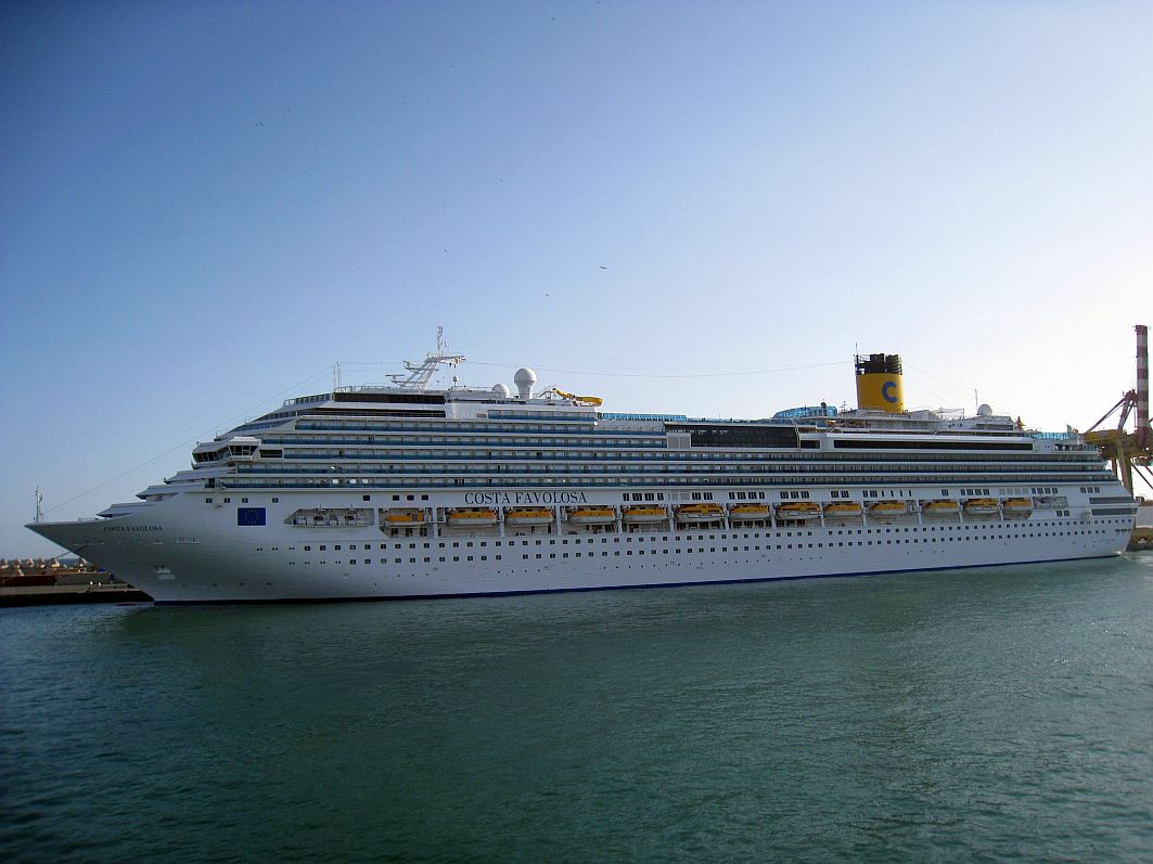 Zum Frühstück im Markt-Restaurant habe ich schließlich ungehinderten Blick auf die "Costa Favolosa", die gegenüber angelegt hat.