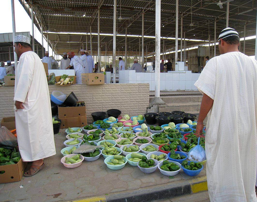 Farbenfroh, exotisch und vielfältig präsentiert sich der Souk von Barka – orientalisch eben. Jede Menge Obst- und Gemüsesorten – bekannt und unbekannt. Entweder in Schüsseln oder gleich in Säcken und Stiegen. Übersichtlich angeordnet oder auch schon mal direkt aus dem Kofferraum eines Lieferwagens heraus. Jedenfalls geht es laut und wuselig zu. Und über all dem liegt die ganze Zeit ein leichter Duft des Orients: Weihrauch.